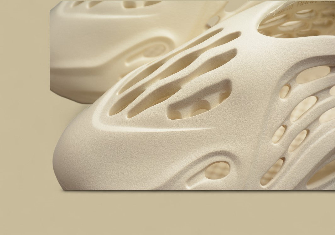 Der Adidas Yeezy Foam Runner „MXT Moon Grey“ ist ein innovativer Slip-On-Sneaker, der modernes Design mit nachhaltiger Technologie vereint. Das einteilige Obermaterial besteht aus einer Mischung von EVA-Schaumstoff und Algenmaterial, was nicht nur für Leichtigkeit und Strapazierfähigkeit sorgt, sondern auch umweltfreundlich ist. Die Farbgebung kombiniert Beige-, Braun- und Grautöne in einem marmorierten Muster, das jedem Paar ein einzigartiges Aussehen verleiht. Großzügige Belüftungsöffnungen unterschiedlicher Größe bieten optimale Atmungsaktivität, während die wellenförmige Außensohle für hervorragende Traktion sorgt. Der „MXT Moon Grey“ wurde am 26. März 2021 veröffentlicht und ist seitdem ein begehrtes Modell unter Sneaker-Enthusiasten.