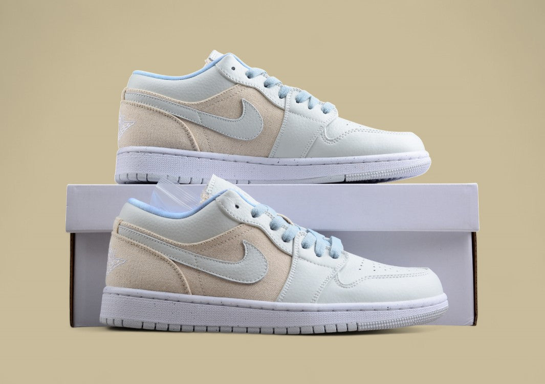 Der Air Jordan 1 Low „Canvas“ hebt sich mit einem besonderen Materialmix von klassischen Leder-Versionen ab. Das Obermaterial besteht aus robustem Canvas-Stoff in neutralen Beige- und Cremetönen, was dem Sneaker einen cleanen, natürlichen Look verleiht. Die minimalistischen Farbtöne machen ihn besonders vielseitig und leicht kombinierbar – perfekt für den Alltag oder zurückhaltende Streetwear-Looks. Subtile Details wie tonale Nähte, ein heller Swoosh und das gestickte Wings-Logo auf der Ferse sorgen für ein stimmiges Gesamtbild. Die Gummisohle in Off-White rundet das Design ab und verstärkt den dezenten Vintage-Vibe. Ein unaufdringlicher, aber stilvoller Jordan mit besonderer Textur.