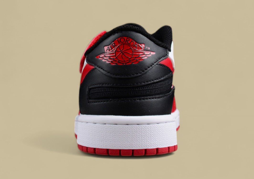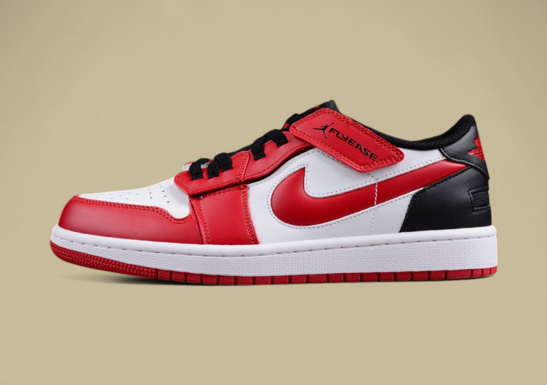 AJ1 Low mit FlyEase-Technologie für einfaches Anziehen im klassischen Gym Red Look.Barrierefrei, stylisch und 100 % Jordan-DNA.