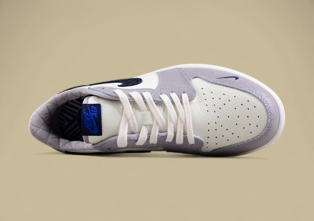 Der Air Jordan 1 Low SE Craft „Inside Out“ präsentiert sich in einem dezent dekonstruierten Look, der klassische Jordan-Elemente mit modernen Designakzenten kombiniert. Das Obermaterial besteht aus einer Mischung aus hochwertigem Leder und Wildleder in den Farbtönen Weiß, Sail und Light Iron Ore. Besondere Highlights sind die freiliegenden Schaumstoffpolsterungen an Zunge und Fersenkragen sowie die sichtbaren Nähte, die dem Sneaker einen handgefertigten Charakter verleihen. Ein subtiler Farbakzent wird durch die orangefarbene „#23“-Stickerei am seitlichen Swoosh gesetzt, eine Hommage an Michael Jordans legendäre Trikotnummer. Abgerundet wird das Design durch eine weiße Mittelsohle und eine graue Außensohle, die für Traktion und Haltbarkeit sorgt. Dieser Sneaker ist die perfekte Wahl für alle, die klassischen Stil mit einem modernen Twist suchen.