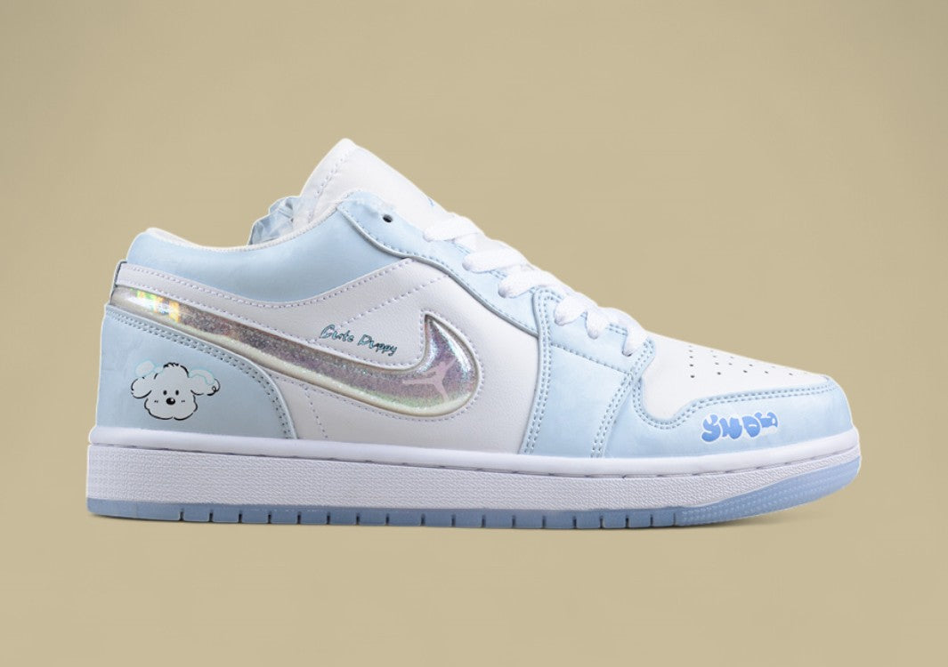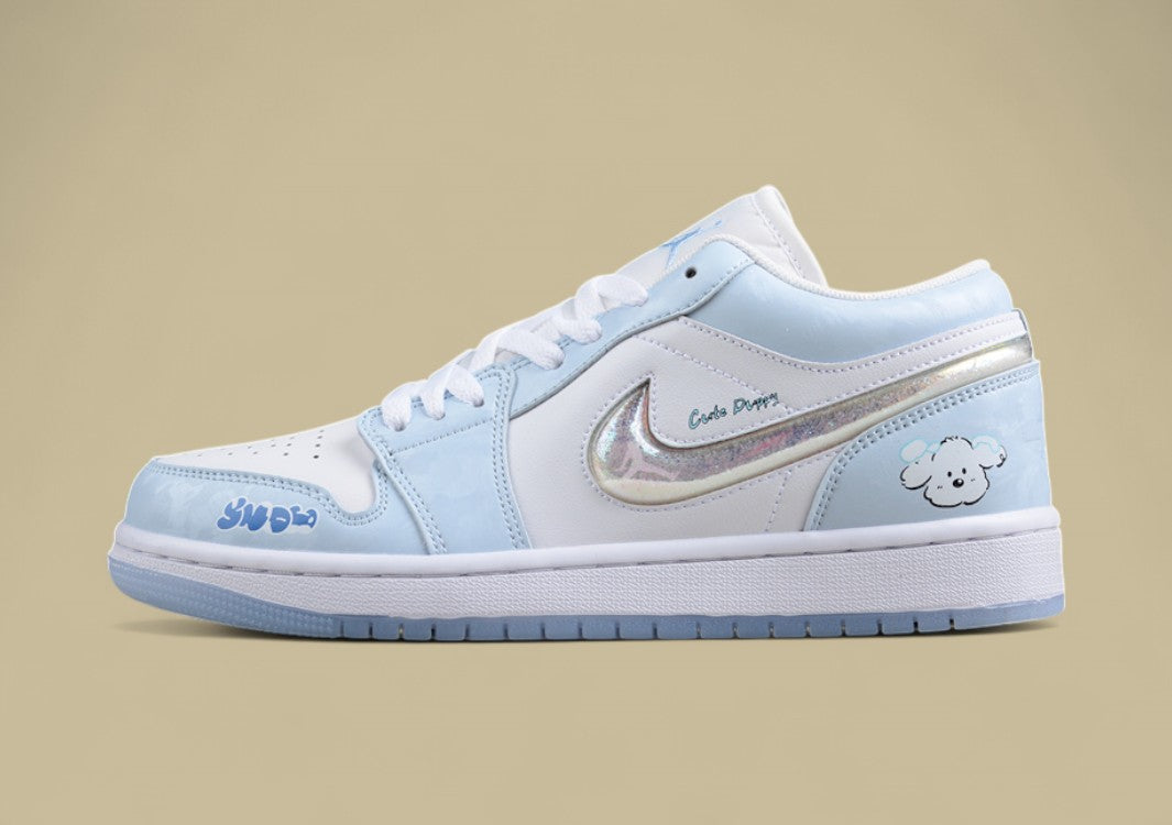 Der Air Jordan 1 Low SE "Little Puppy – Icy Blue" vereint niedlichen Charme mit winterlicher Frische. Inspiriert vom treuen Begleiter des Menschen, ziert eine detailreiche Welpen-Stickerei die Ferse dieses besonderen Sneakers. Die eisblaue Farbgebung, kombiniert mit weichen Materialien wie Veloursleder und Plüsch, schafft eine kühle, aber herzliche Ästhetik – perfekt für die kalten Monate. Pastellige Akzente und liebevolle Details machen diesen AJ1 Low zu einem echten Hingucker, der Komfort, Stil und verspielte Leichtigkeit in einem Design vereint.