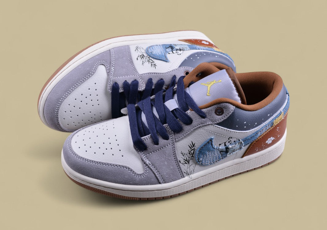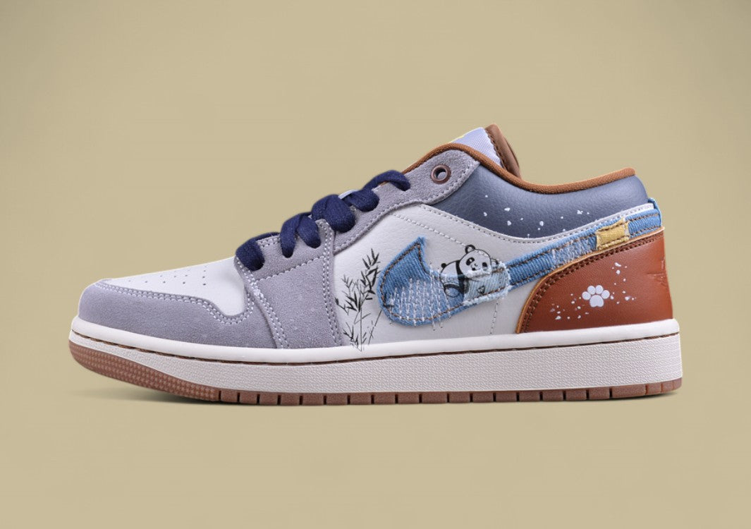 Winter-Edition des AJ1 Low mit Panda-Stickerei und kuscheligem Innenfutter.Ein stylischer Begleiter mit tierischem Charme für kalte Tage.