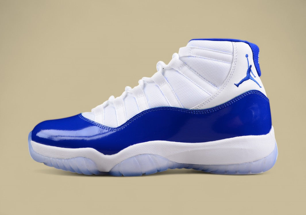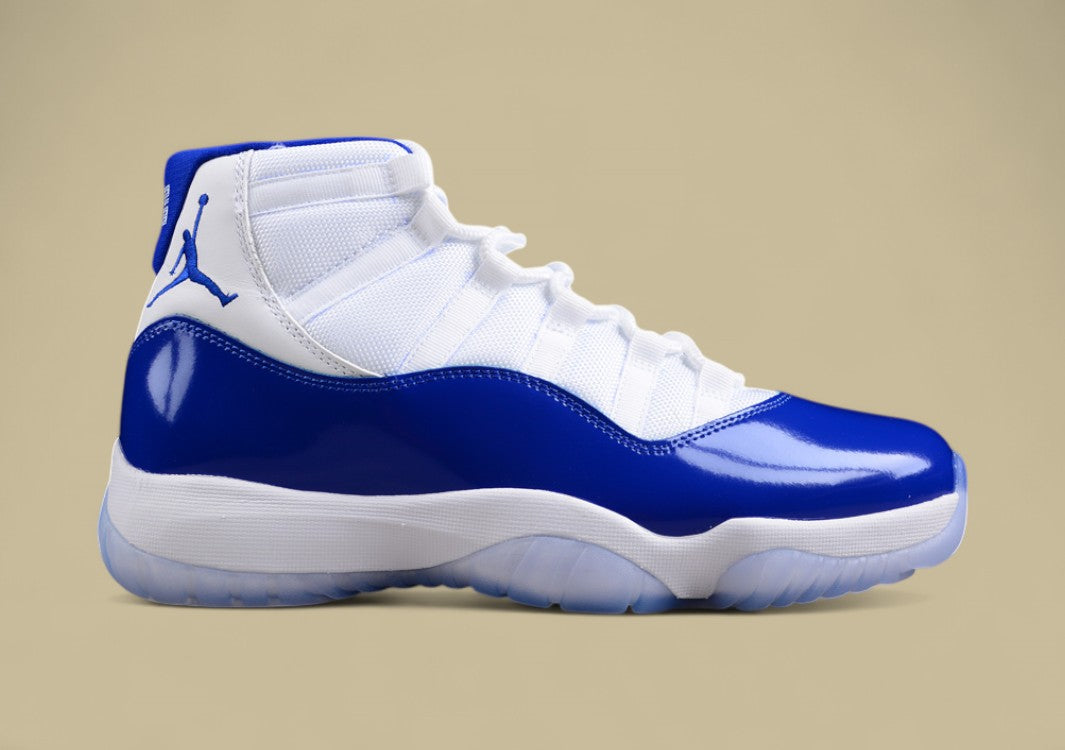 Der Air Jordan 11 Retro "Concord Sketch" ist eine kreative Neuinterpretation des klassischen Concord-Designs, die mit lebendigen Farben und ikonischen Elementen begeistert. Das Obermaterial kombiniert weißes Mesh mit glänzendem Lackleder in einem kräftigen Royalblau („Sketch“), was dem Sneaker einen auffälligen, modernen Look verleiht. Die weiße Zwischensohle bildet einen sauberen Kontrast, während die halbtransparente, eisblaue Außensohle für zusätzliche Frische sorgt. Abgerundet wird das Design durch ein gesticktes Jumpman-Logo an der Ferse und das traditionelle „23“-Branding. Ausgestattet mit der bekannten Zoom Air-Dämpfung und Carbonfaserplatte bietet der Sneaker optimalen Tragekomfort, Stabilität und Style. Der „Concord Sketch“ ist perfekt für alle, die Klassiker lieben, aber nicht auf moderne Farb-Highlights verzichten wollen.