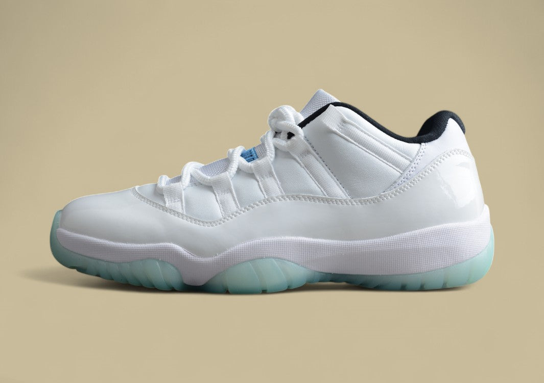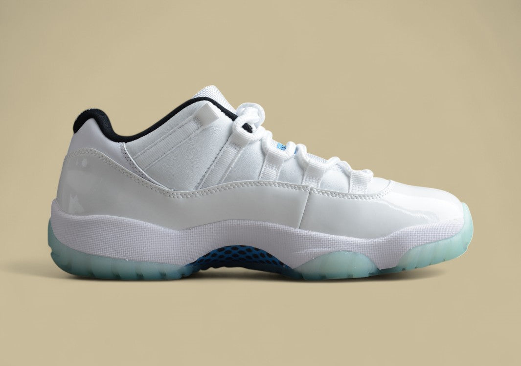 Der Air Jordan 11 Retro Low “Legend Blue” besticht durch weißes Lackleder, eisblaue Sohle und klassischen Komfort. Ein stilvoller Klassiker mit sportlichem Flair.