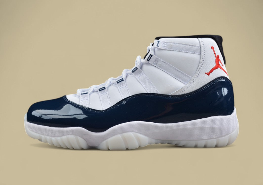 Der Air Jordan 11 Retro "Rare Air" ist eine exklusive Variante der legendären 11er-Silhouette und vereint luxuriöses Design mit sportlicher DNA. Das Upper besteht aus hochwertigem, strukturiertem Leder in reinem Weiß und verzichtet bewusst auf das klassische Lackleder, wodurch ein moderner, minimalistischer Look entsteht. Schwarze Akzente an der Ferse, Zunge und dem Innenfutter setzen elegante Kontraste, während das gestickte „Rare Air“-Branding auf der Innenseite ein klares Statement für Exklusivität liefert. Die transparente Außensohle mit Carbonfaserplatte sowie die bewährte Zoom Air-Dämpfung garantieren höchste Performance und Tragekomfort. Dieser Sneaker richtet sich an Kenner, die das Besondere suchen – eine seltene Version mit klarer Formsprache und starkem Auftritt.