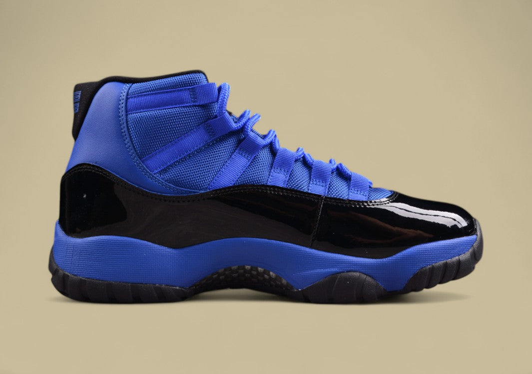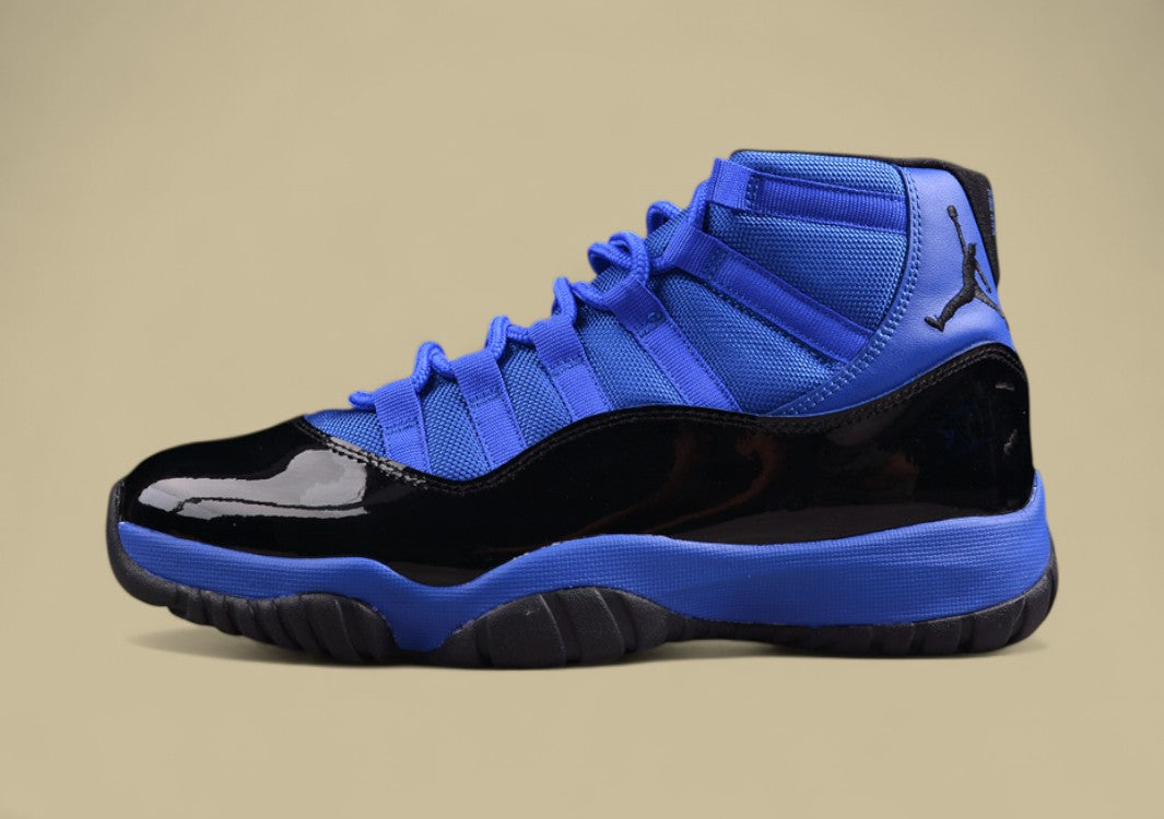 Markanter Jordan 11 in Royalblau mit glänzend schwarzem Finish. Ein sportlich-edler Look, der sowohl auffällt als auch überzeugt.