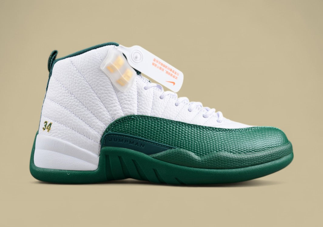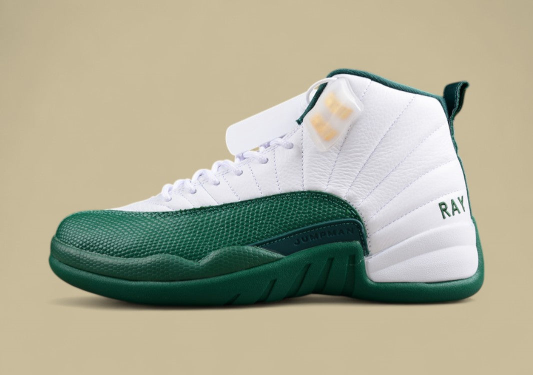 Der AJ12 "Ray Allen" vereint klassisches Jordan-Design mit legendären NBA-Vibes.Weiß-Grün, stark im Stil – ein Tribut an den King of the Corner Three.