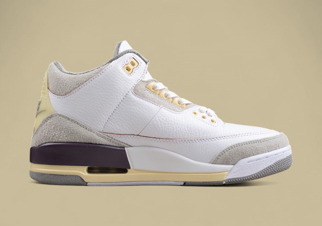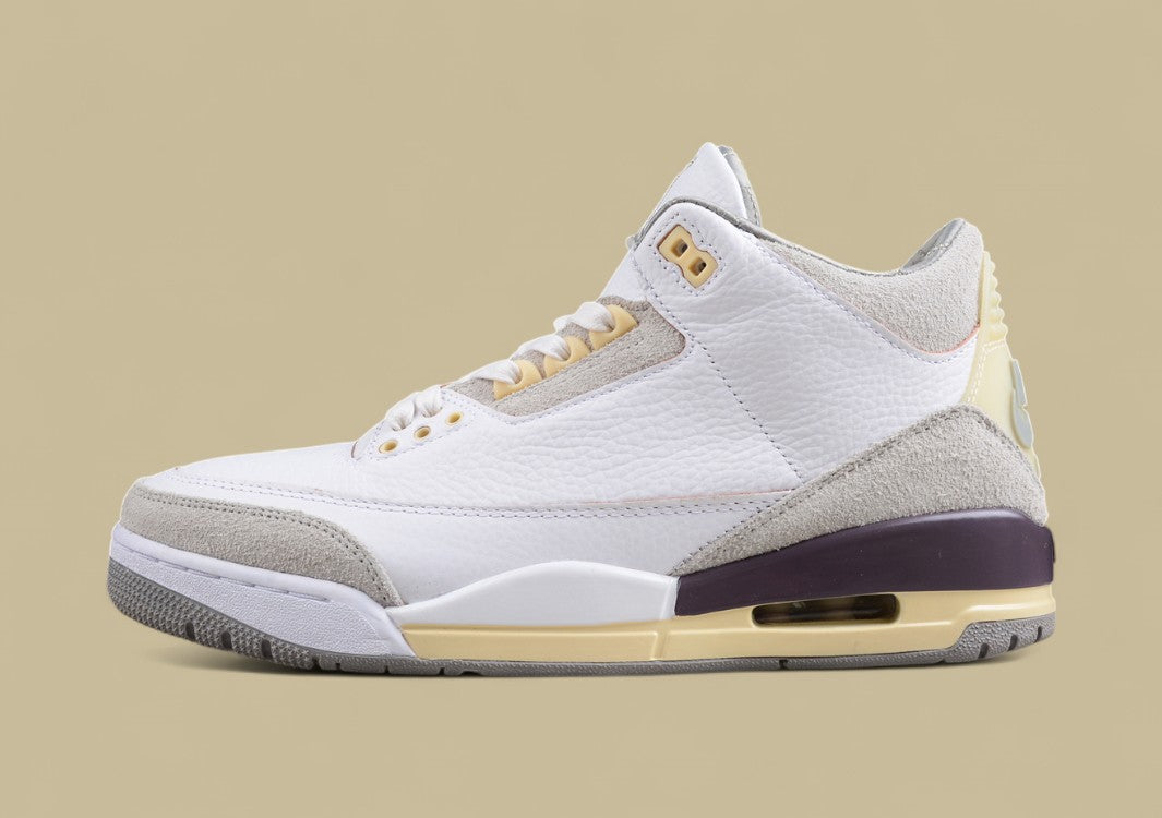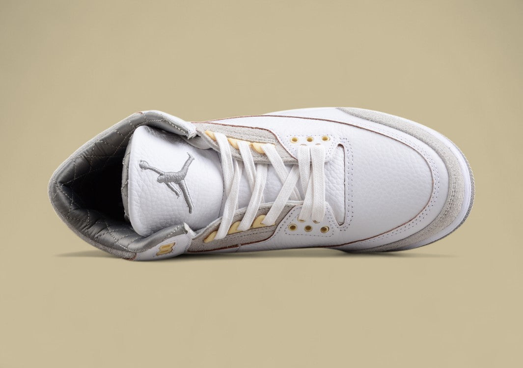 Graues Suede, klassisches Elefantenmuster und dezente Farbkontraste. Ein moderner Jordan 3 mit hochwertiger Verarbeitung und urbanem Stil.
