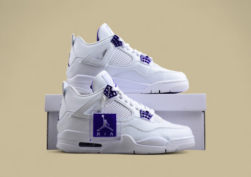 Der Air Jordan 4 "Court Purple" kombiniert weißes Premium-Leder mit metallisch violetten Akzenten für einen stilvollen Look. Ein zeitloser Sneaker, der Eleganz und Sportlichkeit vereint.