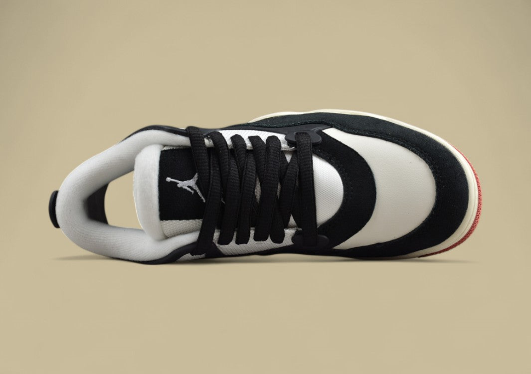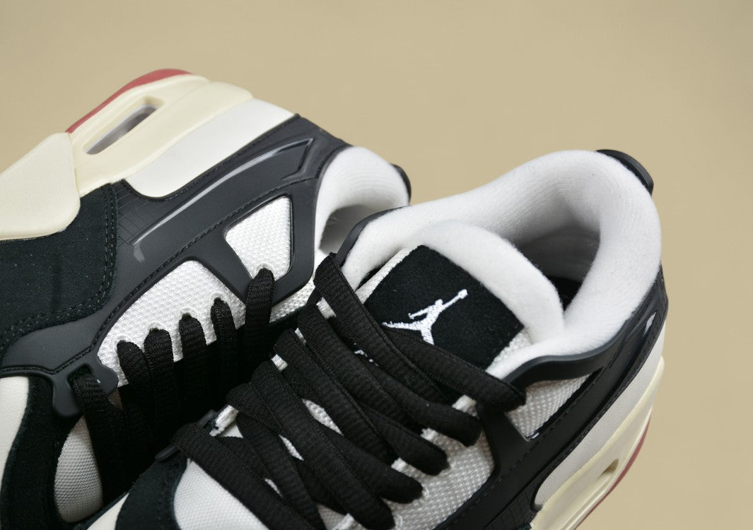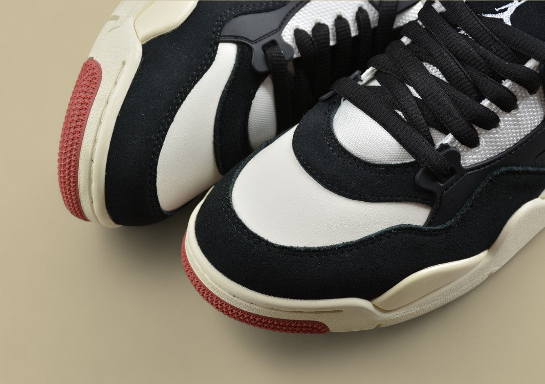 Der Air Jordan 4 "Bred Reimagined" ist eine Neuinterpretation des legendären AJ4 in der klassischen "Bred"-Farbenkombination: Schwarz, Varsity Red, Cement Grey und Summit White. Veröffentlicht am 17. Februar 2024, anlässlich von Michael Jordans 61. Geburtstag und dem NBA All-Star-Wochenende, bringt diese Version das ikonische Design mit modernen Akzenten zurück. Das Obermaterial besteht aus hochwertigem, schwarzem Vollnarbenleder, das dem ursprünglichen Nubukleder weicht und dem Schuh ein luxuriöseres Aussehen verleiht. Die charakteristischen Mesh-Einsätze an Zunge und Seiten, die "fliegenden" Ösen und die sichtbare Air-Dämpfungseinheit in der Ferse bleiben erhalten und sorgen für den klassischen Look und Komfort. Besonders hervorzuheben ist das "Nike Air"-Branding auf der Ferse, das an die Originale von 1989 erinnert und bei Sammlern sehr geschätzt wird. Mit einem Preis von 215 US-Dollar richtet sich der "Bred Reimagined" an Sneaker-Enthusiasten und Sammler, die Wert auf Authentizität und hochwertige Verarbeitung legen. Der Schuh ist sowohl in Herren- als auch in Kindergrößen erhältlich und wurde weltweit über Nike und ausgewählte Einzelhändler vertrieben.