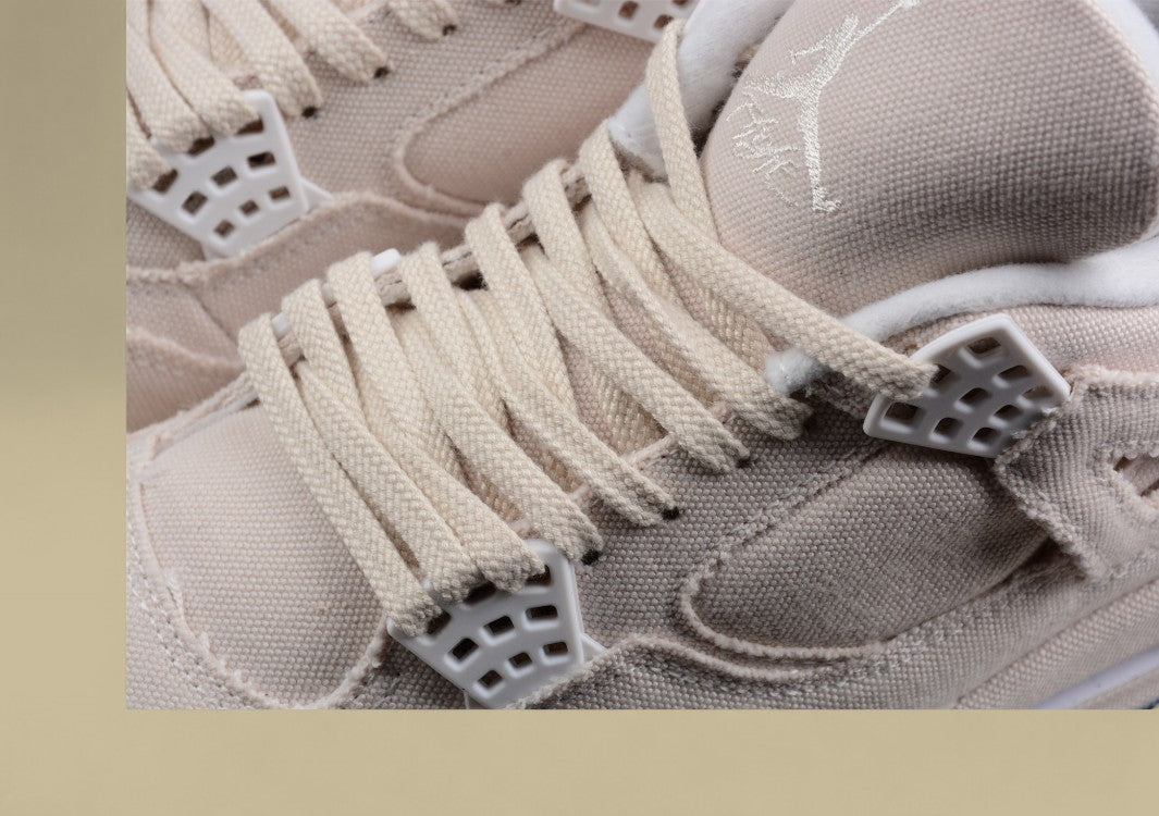 Der Air Jordan 4 Retro "Canvas" in Weiß ist eine minimalistische, kreative Neuinterpretation des klassischen Jordan 4 Designs. Das Obermaterial besteht vollständig aus strukturiertem Canvas-Gewebe in reinem Weiß und verleiht dem Sneaker eine moderne, fast kunstvolle Ästhetik mit DIY-Potenzial. Die tonalen Details – von den Mesh-Einsätzen über die TPU-Flügel bis hin zur Sohle – sorgen für einen einheitlichen, sauberen Look, der sich perfekt in jede Garderobe integrieren lässt. Die sichtbare Air-Sole-Einheit in der Ferse garantiert dabei gewohnte Jordan-Dämpfung und Komfort. Dieser Sneaker lädt dazu ein, getragen, bemalt oder individuell gestaltet zu werden – oder einfach pur und clean zu glänzen. Ein Must-have für kreative Köpfe und Liebhaber des dezenten Designs.