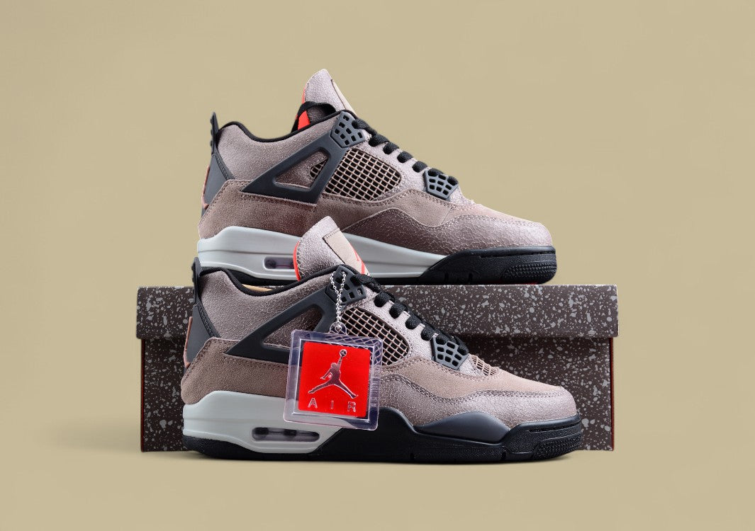 Der Air Jordan 4 "Taupe Haze" kombiniert erdige Töne mit auffälligen roten Akzenten für einen modernen Look. Hochwertige Materialien und ikonisches Design machen ihn zum Highlight jeder Sneaker-Sammlung.