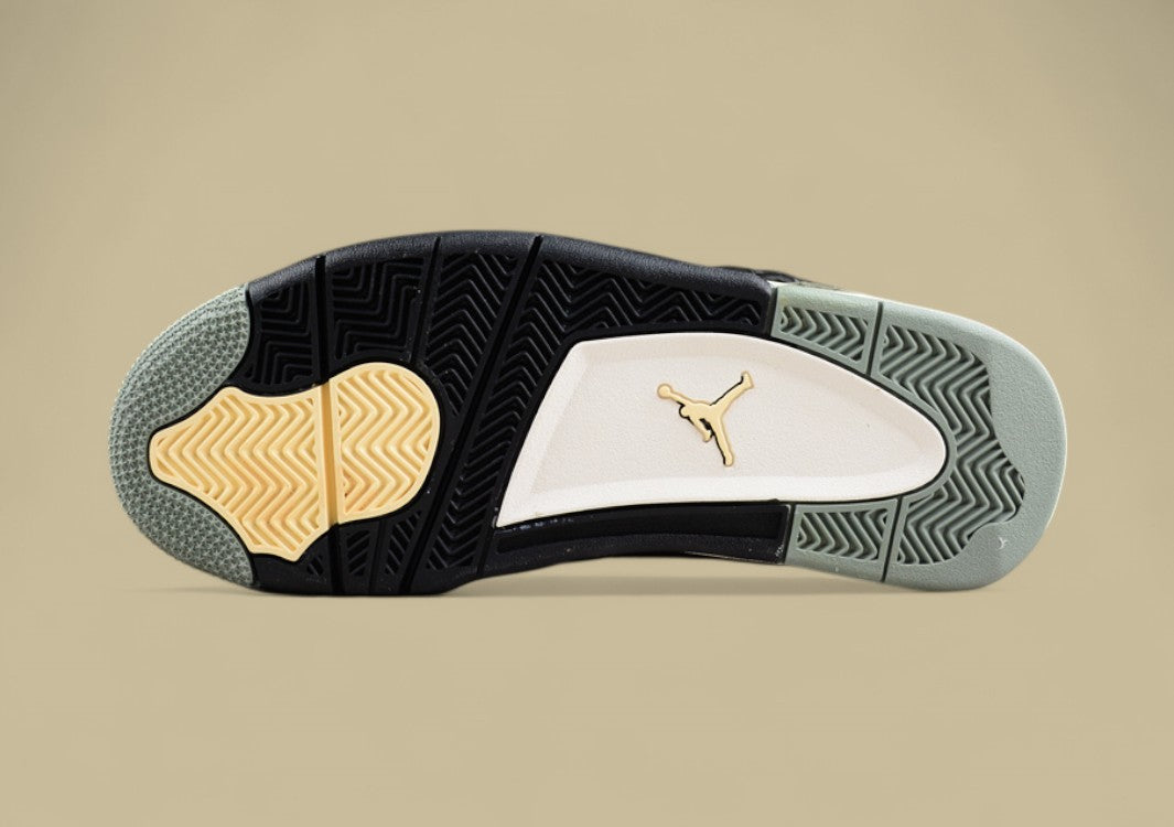 Der Air Jordan 4 SE Craft "Joe 4 Olive Green" ist eine luxuriöse Version des ikonischen Air Jordan 4 und besticht durch eine Kombination aus olivgrünen Farbtönen und hochwertigen Materialien. Als Teil der "Craft"-Kollektion hebt dieses Modell das klassische Design auf ein neues Niveau mit edlem Nubukleder und Wildleder in verschiedenen Olivtönen, die durch schwarze Akzente und strukturierte Details ergänzt werden. Das debossierte Rautenmuster auf den Seitenpanels ersetzt das traditionelle Mesh und verleiht dem Schuh einen modernen, einzigartigen Look. Zudem verfügt der Schuh über eine Sail-Mittelsohle mit einer sichtbaren Air-Dämpfungseinheit im Fersenbereich für maximalen Komfort und Dämpfung. Die Pale Vanilla Jumpman-Logos auf der Zunge und der Ferse setzen einen weichen Kontrast zu den tiefen Oliv- und Schwarztönen. Abgerundet wird das Design mit einer strapazierfähigen Gummisohle, die sowohl Stil als auch Funktionalität bietet. Dieser Schuh ist ein Muss für Sneaker-Enthusiasten, die Luxus und Alltagsnutzung vereinen möchten.
