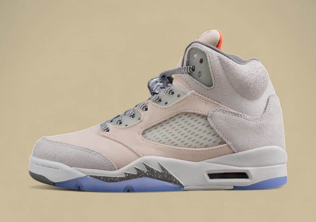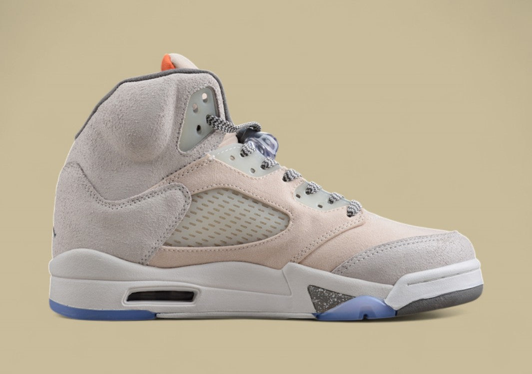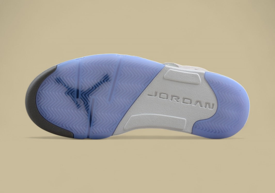 Der Air Jordan 5 Durchscheinendes Eisblau Hellgrau mit Silbergrau besticht durch seine futurische Optik und eine elegante, kühle Farbpalette. Das Obermaterial in hellem Grau wird durch silbergraue Akzente veredelt und harmoniert perfekt mit der halbtransparenten Ice Blue-Außensohle, die dem Sneaker einen modernen, fast schwebenden Look verleiht. Die reflektierende Zunge, die klassischen Mesh-Seitenteile und die gezackte Midsole mit Sichtfenster-Air-Einheit bleiben dem ikonischen Jordan 5 Design treu. Dieser Sneaker verbindet innovatives Design mit bewährtem Tragekomfort – ideal für alle, die einen frischen, cleanen Style mit technischer Raffinesse suchen.
