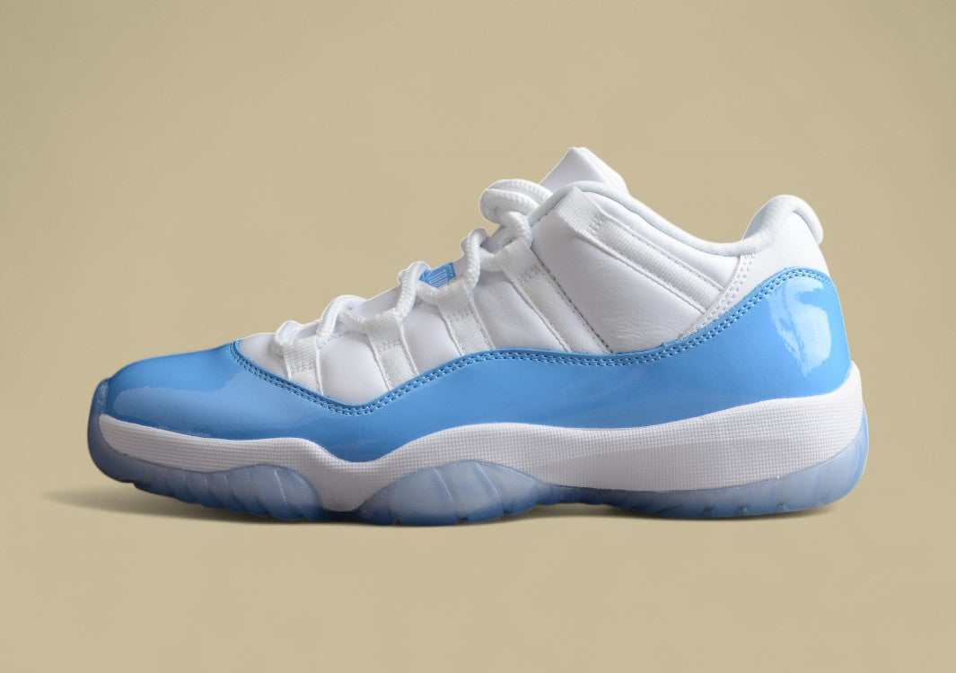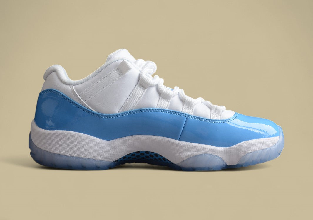 Der Air Jordan 11 Low „Legend Blue“ kombiniert weißes Lackleder mit eisblauer Sohle und hellblauen Details. Frisch, edel und perfekt für warme Tage.