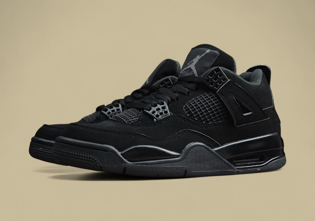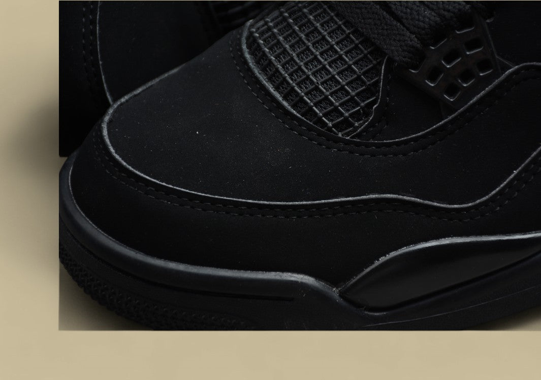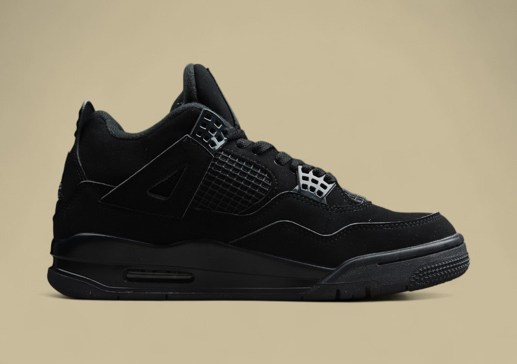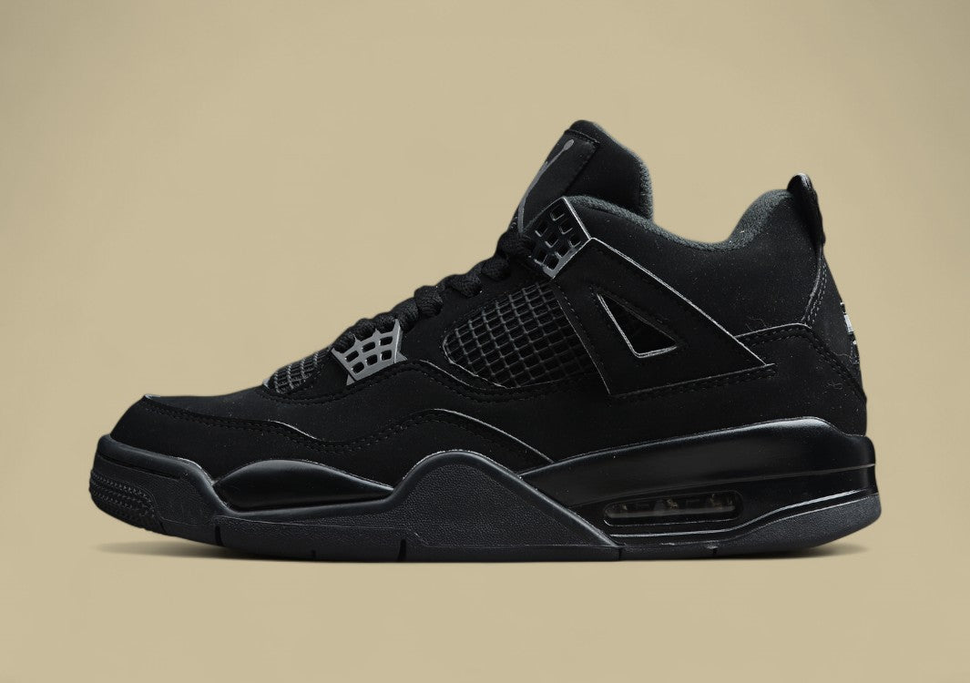 Der AJ4 All Black ist die Definition von purer Eleganz im Streetwear-Format. Komplett in Schwarz gehalten, strahlt dieser Sneaker kompromisslose Stärke und Stilbewusstsein aus. Die Kombination aus hochwertigem Leder, matten Mesh-Einsätzen und fein strukturierten Details sorgt für Tiefe, ohne auf Farbe angewiesen zu sein. Die klassische AJ4-Silhouette bleibt unverkennbar: mit den typischen Netz-Panels, stabilen Lace Locks und der bewährten Air-Dämpfung für optimalen Komfort. Dieser Schuh ist mehr als nur ein Sneaker – er ist ein Statement für alle, die klare Linien, minimalistisches Design und maximale Wirkung bevorzugen.