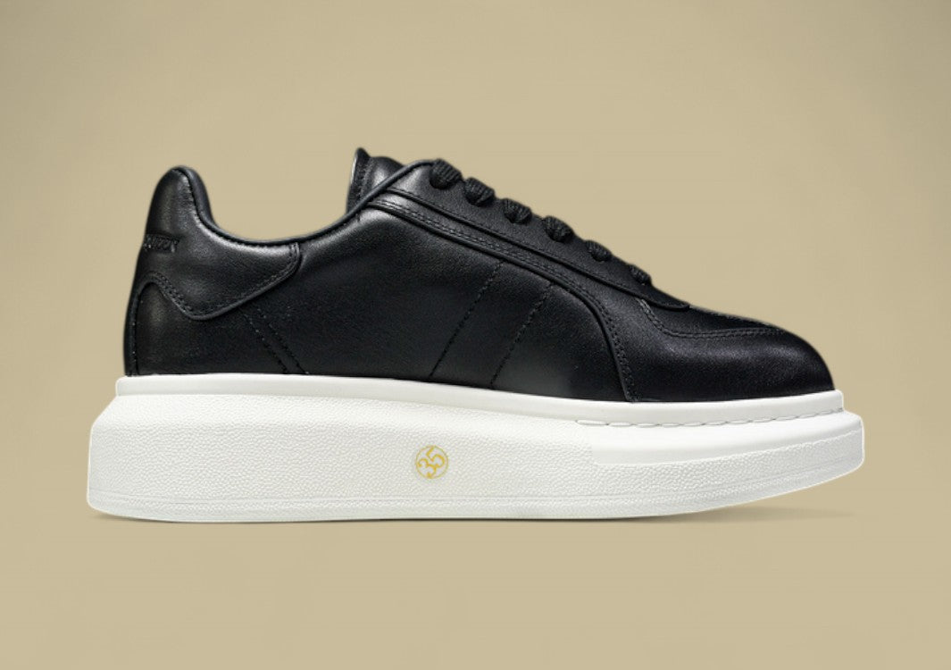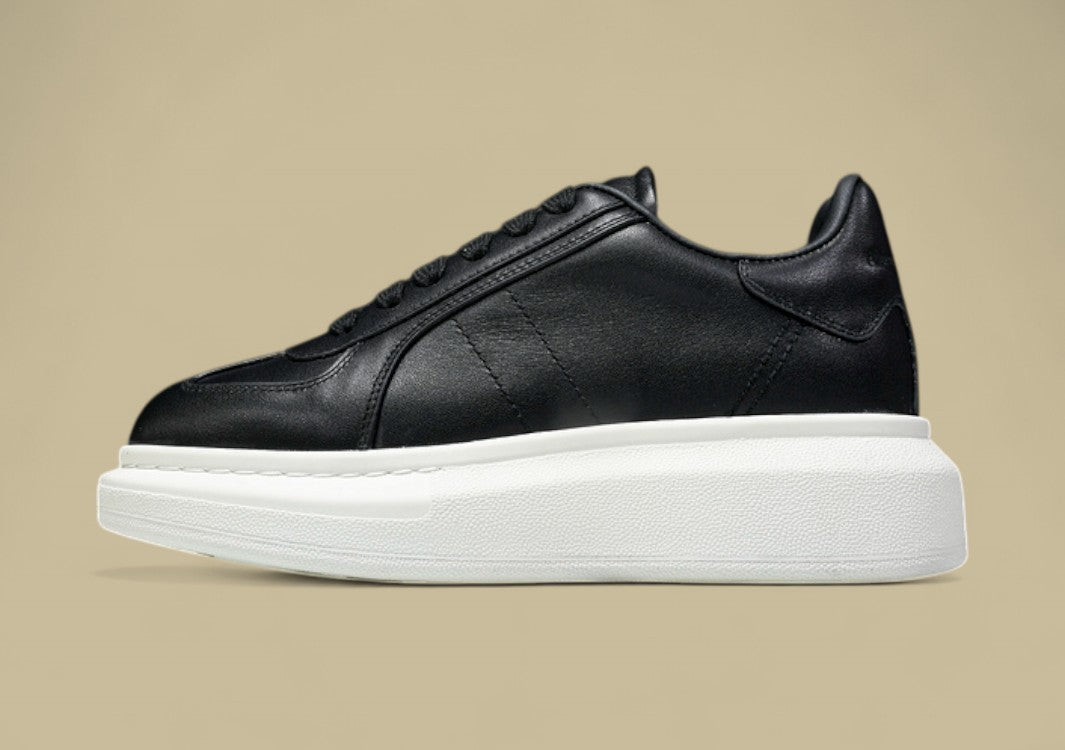 Die Alexander McQueen 24 Herbst/Winter Lovers Wide Sneakers in Schwarz/Weiß verkörpern stilvolle Unisex-Eleganz mit einem modernen Twist. Das Design besticht durch klare Linien, ein breites, stabiles Profil und eine markante Plateausohle, die Komfort und Präsenz gleichermaßen bieten. Hergestellt aus hochwertigem Glattleder, überzeugen diese Sneaker durch ihre edle Verarbeitung und den zeitlosen Farbkontrast. Schwarze Akzente auf einem weißen Grund sorgen für ein kraftvolles Statement, das sowohl minimalistisch als auch ausdrucksstark wirkt. Ideal für Paare oder Einzelträger, die Wert auf modische Harmonie und individuellen Stil legen. Das subtile Branding rundet den luxuriösen Look stilvoll ab – ein Must-have für die kühle Saison.