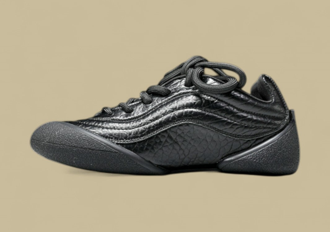 Der Alexander McQueen Flexion in Schwarz überzeugt mit einem kraftvollen, urbanen Look und technischer Raffinesse. Gefertigt aus einem Mix aus atmungsaktivem Mesh und geschmeidigem Leder bietet dieser Sneaker eine perfekte Balance aus Funktionalität und Design. Die flexible, ergonomisch geformte Sohle sorgt für optimalen Halt und Tragekomfort – bei jedem Schritt. In tiefem Schwarz gehalten, strahlt der Schuh zeitlose Eleganz und moderne Coolness aus, während dezente Logo-Details für den charakteristischen McQueen-Touch sorgen. Ideal für alle, die ein sportliches Design mit gehobenem Stil kombinieren möchten – sei es im Alltag oder als modisches Statement.