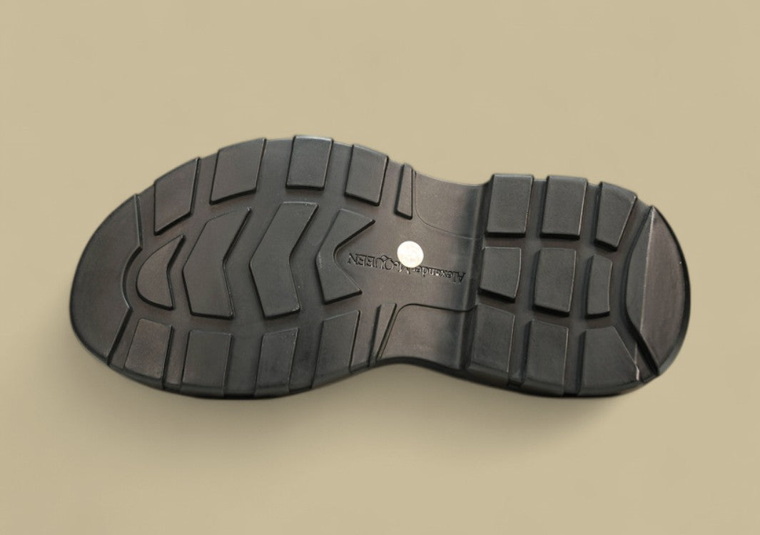 Die Alexander McQueen Sole Sneakers in Schwarz kombinieren minimalistisches Design mit markanter Präsenz. Gefertigt aus hochwertigem Leder, überzeugt das Modell durch seine klare, monochrome Optik und eine kraftvolle, voluminöse Gummisohle – das unverkennbare Markenzeichen der McQueen-Sneaker. Die komplett schwarze Farbgebung sorgt für einen eleganten, urbanen Look, der sich mühelos in jeden modernen Kleiderschrank integrieren lässt. Dezente Logo-Details an Zunge und Ferse runden das Design stilvoll ab, während die ergonomisch geformte Sohle für hohen Tragekomfort sorgt. Ein Must-have für alle, die ein klares Stil-Statement mit Alltagstauglichkeit verbinden möchten.