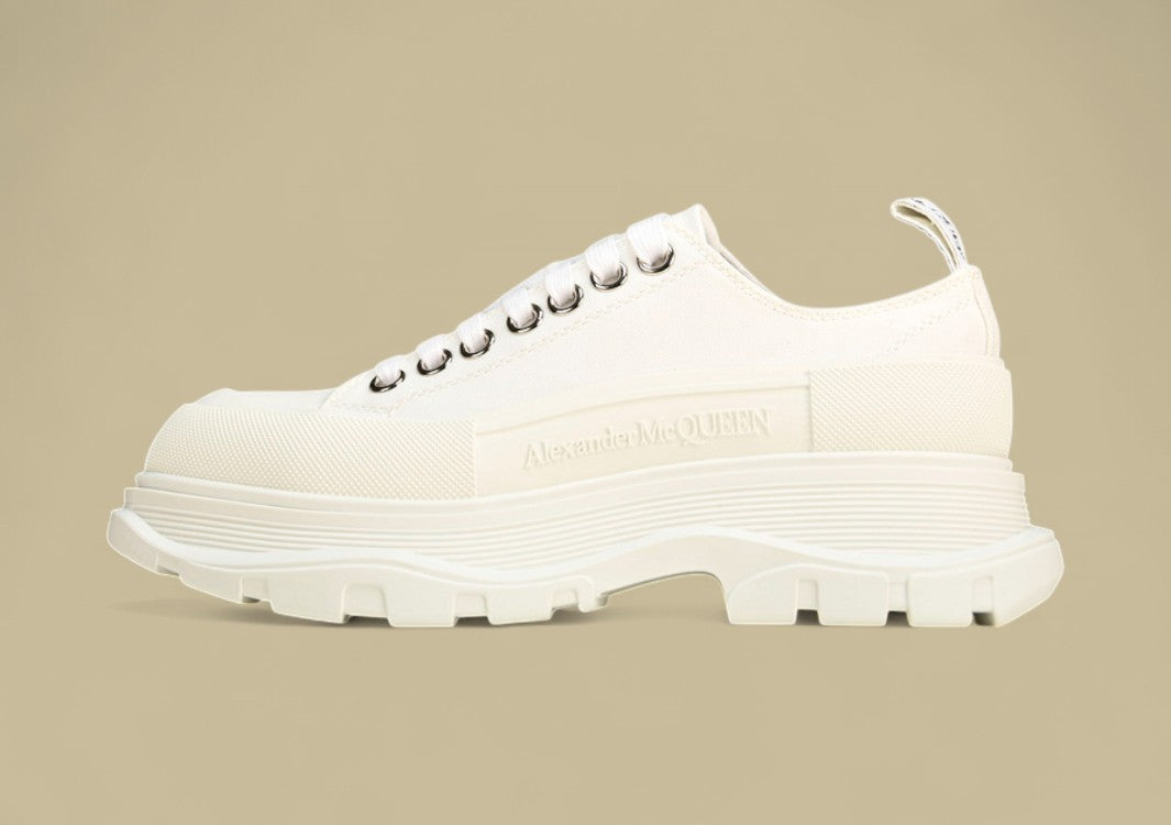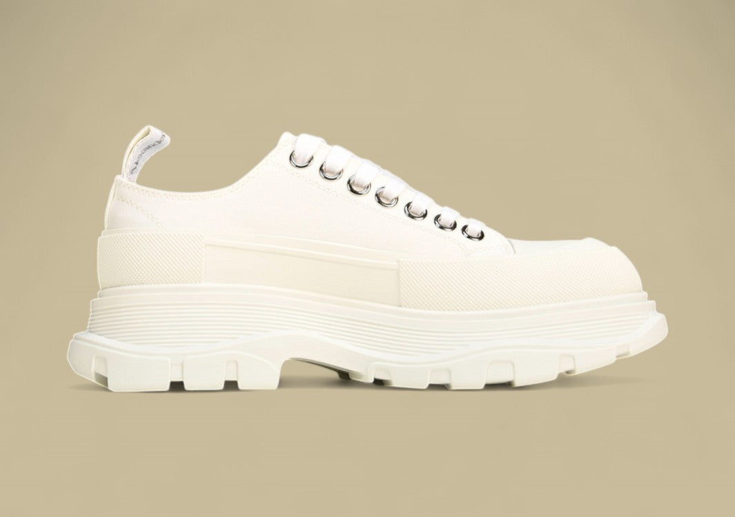 Die Alexander McQueen Sole Sneakers in Weiß sind der Inbegriff von moderner Eleganz mit einem Hauch Rebellion. Gefertigt aus hochwertigem Glattleder und ganz in cleanem Weiß gehalten, überzeugen sie mit ihrer minimalistischen Silhouette und der charakteristischen, übergroßen Gummisohle. Dezente Logo-Details an Zunge und Ferse unterstreichen den luxuriösen Look, während die weiche Polsterung und das hochwertige Innenfutter für maximalen Komfort sorgen. Ob als Kontrast zu sportlichen Outfits oder als stilvoller Akzent zu schlichter Kleidung – diese Sneaker vereinen Komfort, Design und Qualität auf höchstem Niveau.