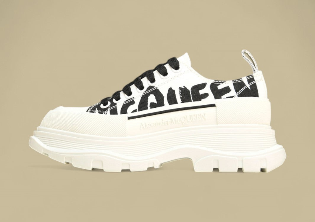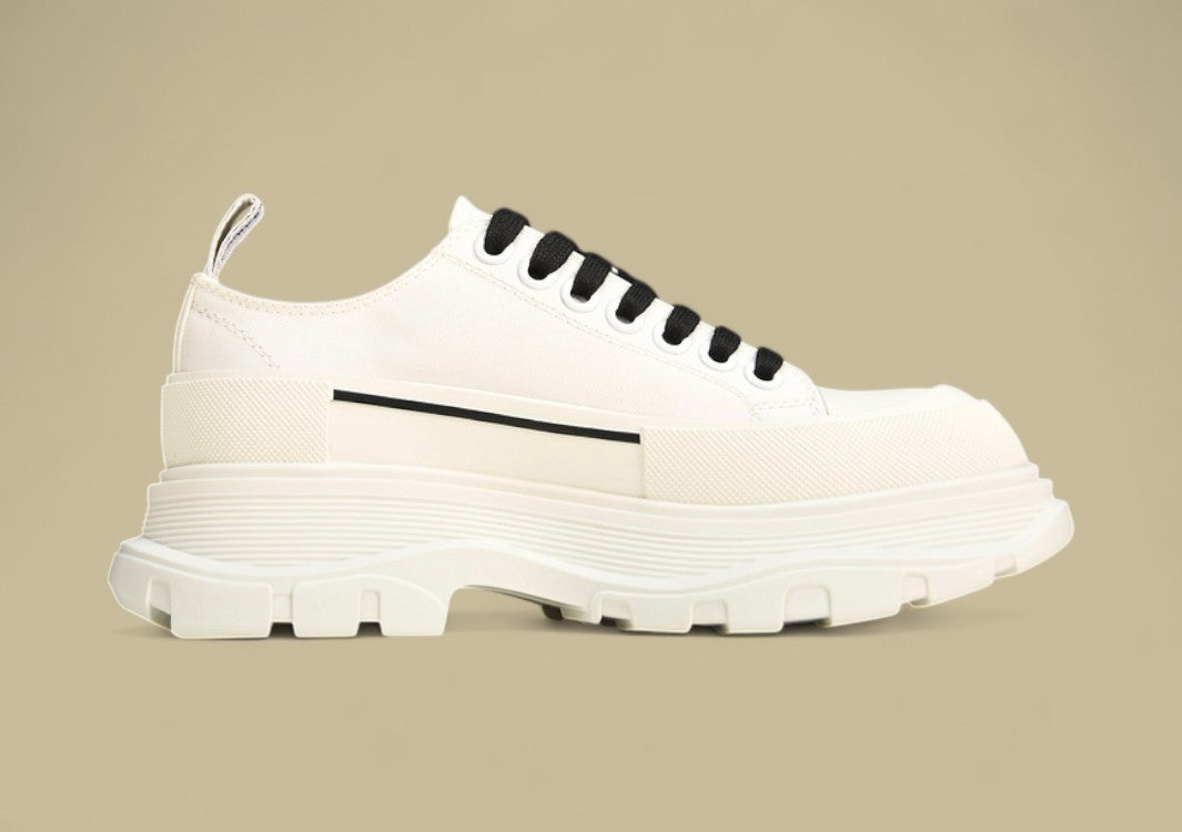 Die Alexander McQueen Sole Sneakers in Weiß/Schwarz kombinieren klare Linien mit markantem Design und setzen dabei auf zeitlosen Kontrast. Das glatte, weiße Leder-Obermaterial wird durch die schwarze Fersenkappe und die überdimensionierte Gummisohle stilvoll ergänzt. Dieses Modell steht für moderne Ästhetik mit einem luxuriösen Touch – zurückhaltend, aber dennoch ein Statement. Das dezente Logo, die saubere Verarbeitung und die komfortable Passform machen diese Sneaker zum idealen Begleiter für den Alltag und besondere Anlässe. Ein Must-have für alle, die klassische Farben mit avantgardistischem Flair verbinden möchten.