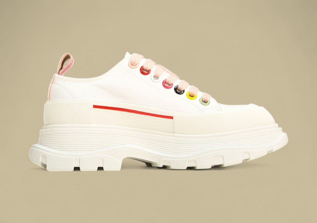 Weiß mit rotem Akzent – die Sole Sneakers von Alexander McQueen verbinden klare Linien mit kraftvollem Design und luxuriösem Tragekomfort.