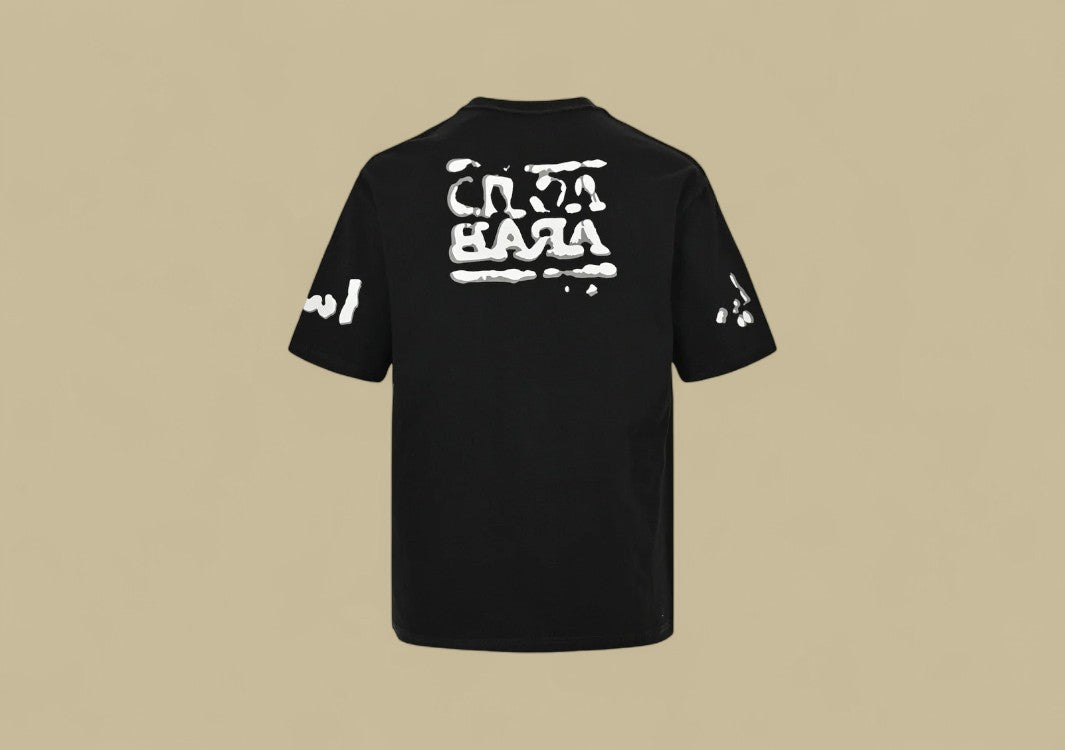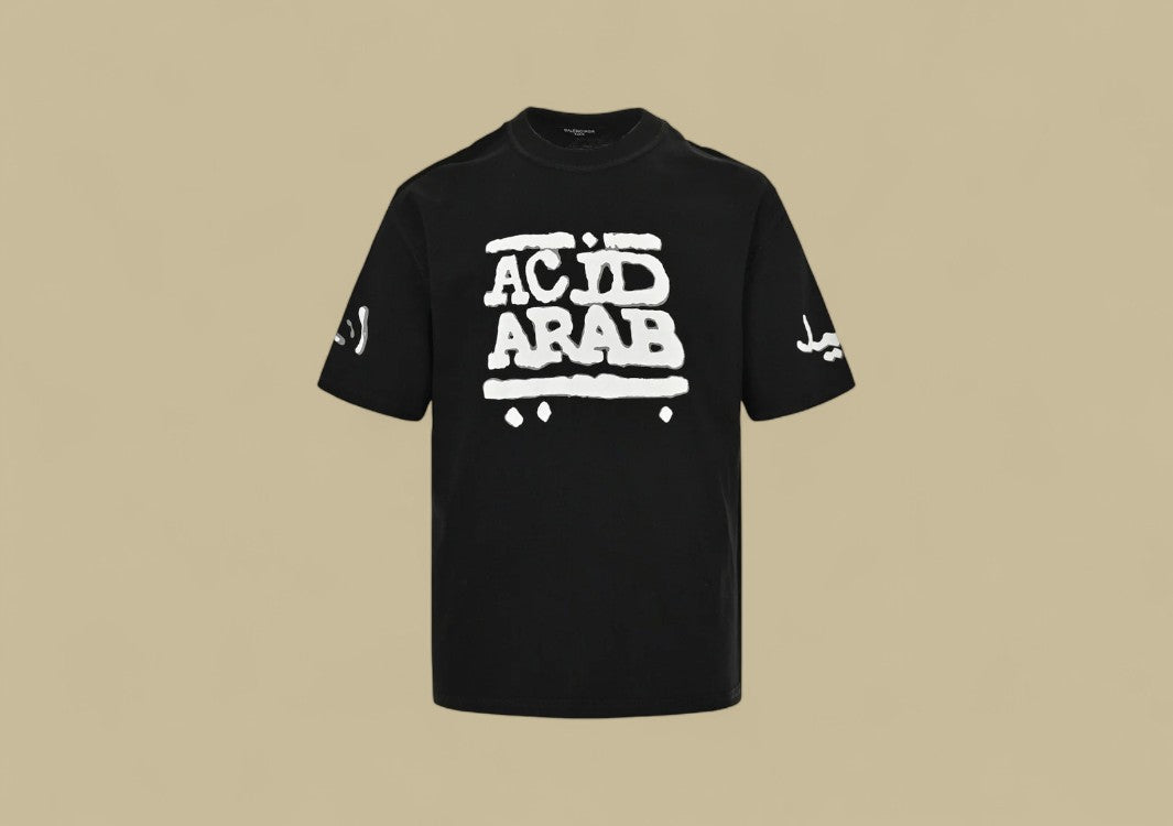 Schwarzes T-Shirt mit Acid Arab Logo Print von Balenciaga.Modernes Design trifft auf urbanen Style.
