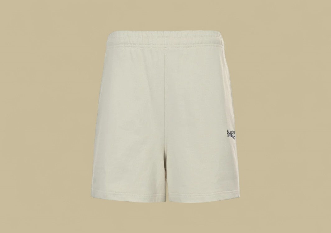Beige Shorts mit besticktem Coca-Cola Logo von Balenciaga.Lässiger Sommerlook trifft auf urbanen Luxus.