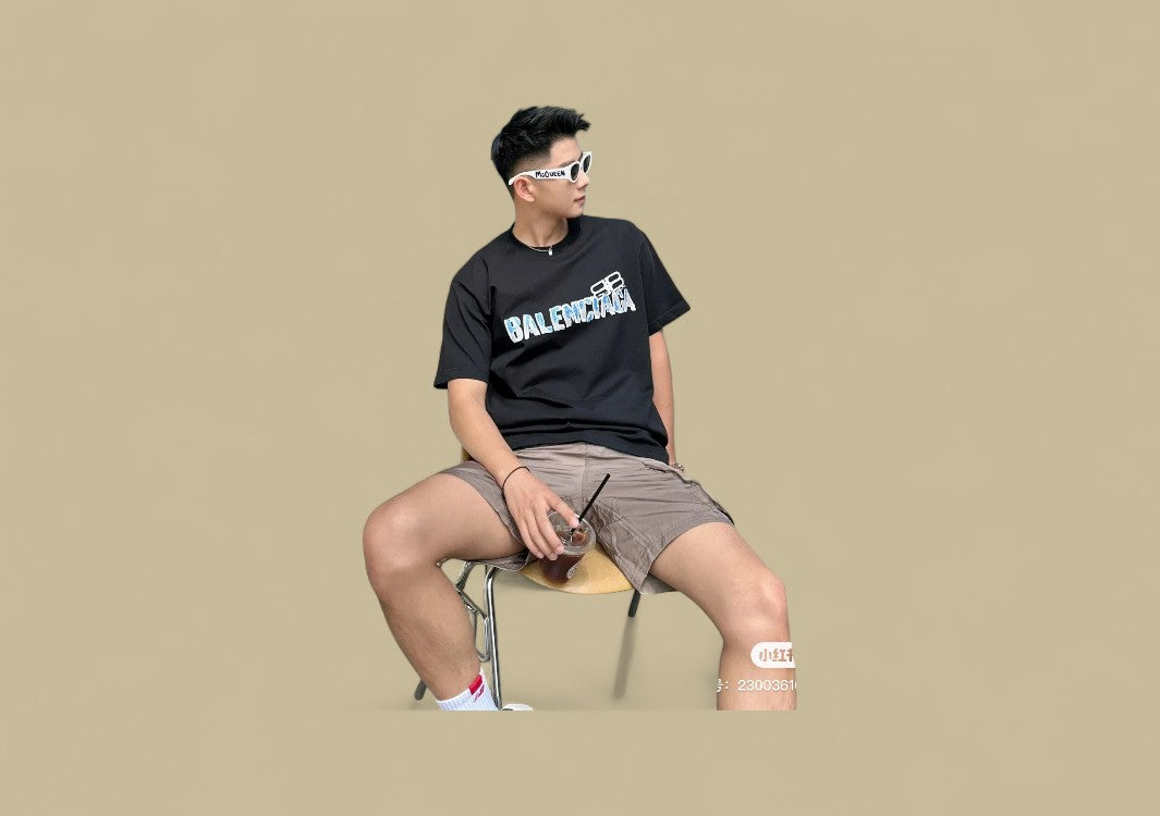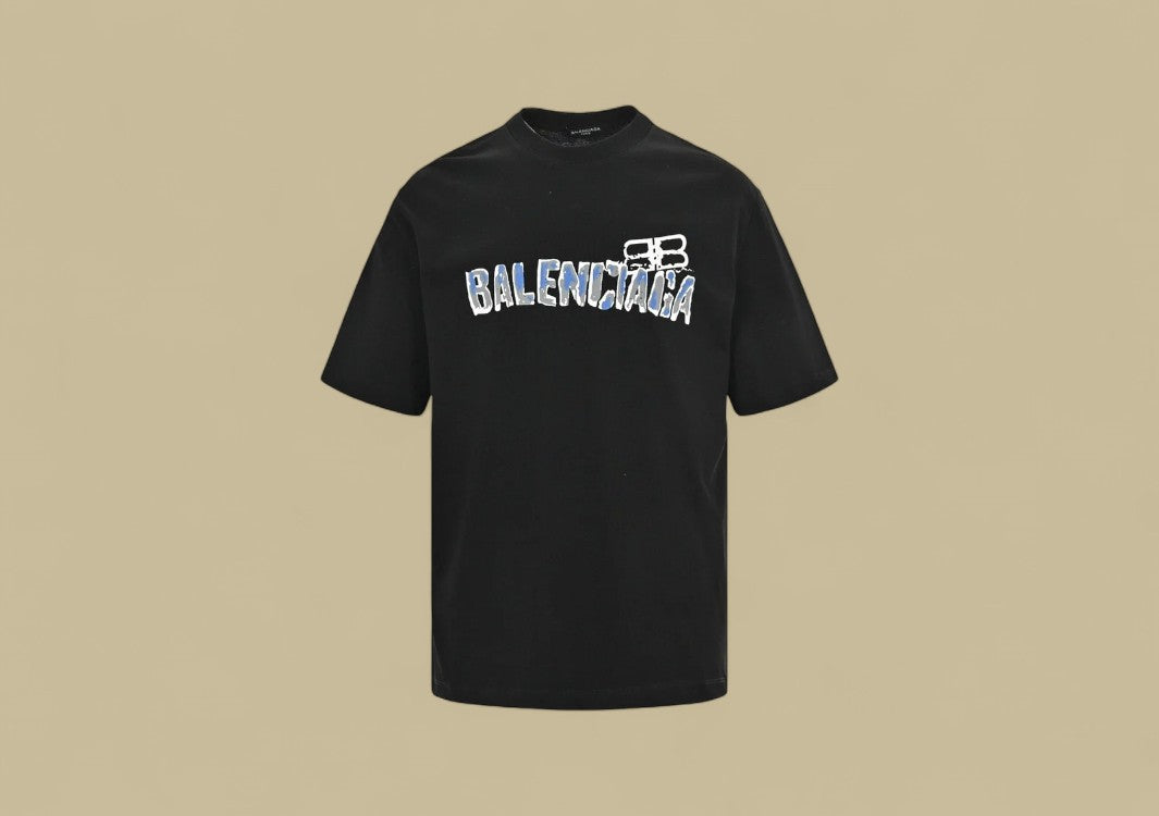 Das Balenciaga 24SS Graffiti Logo T-Shirt in Schwarz verbindet urbanen Streetstyle mit künstlerischem Ausdruck. Gefertigt aus hochwertiger, weicher Baumwolle bietet es eine bequeme, lockere Passform und angenehmen Tragekomfort. Das auffällige Graffiti-Logo auf der Vorderseite setzt einen modernen, rebellischen Akzent und unterstreicht den avantgardistischen Stil von Balenciaga. Vielseitig kombinierbar, ist dieses T-Shirt ein echtes Statement-Piece für modebewusste Streetwear-Fans.