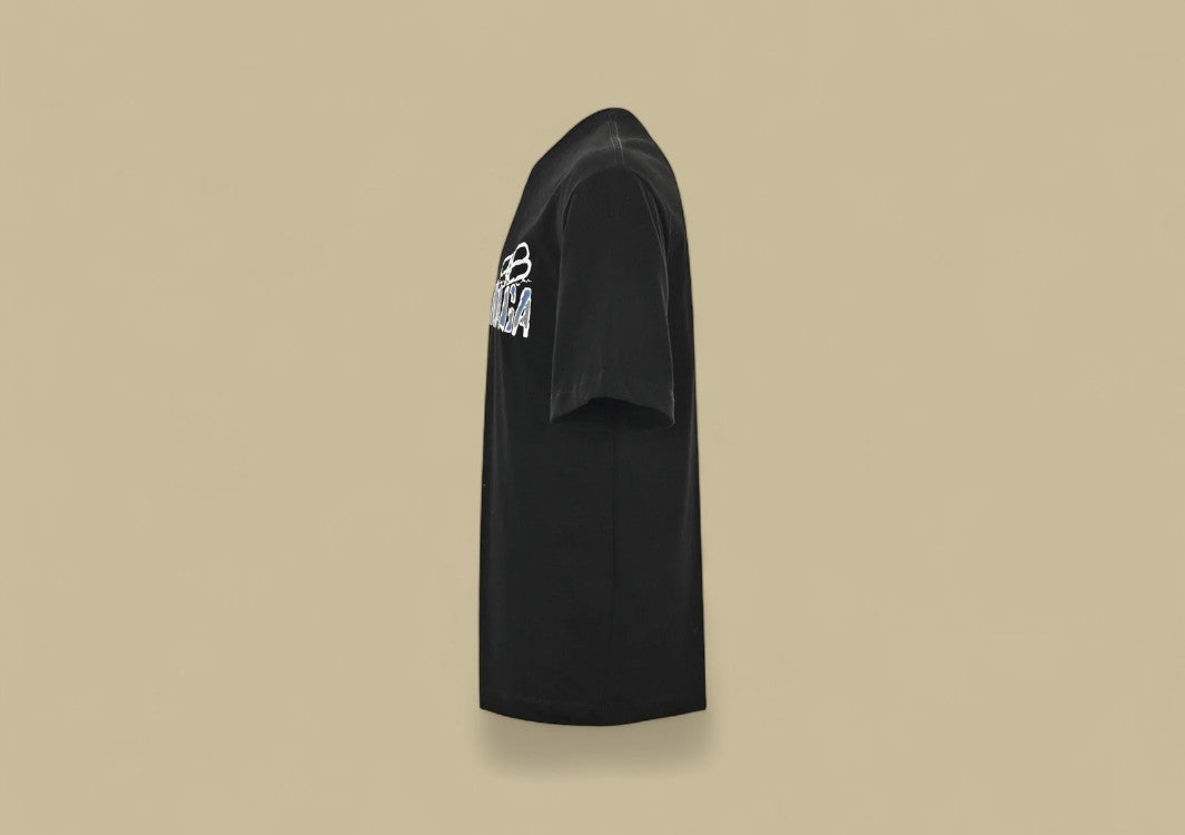 Schwarzes T-Shirt mit auffälligem Graffiti-Logo von Balenciaga.Urbaner Style trifft auf künstlerischen Ausdruck.