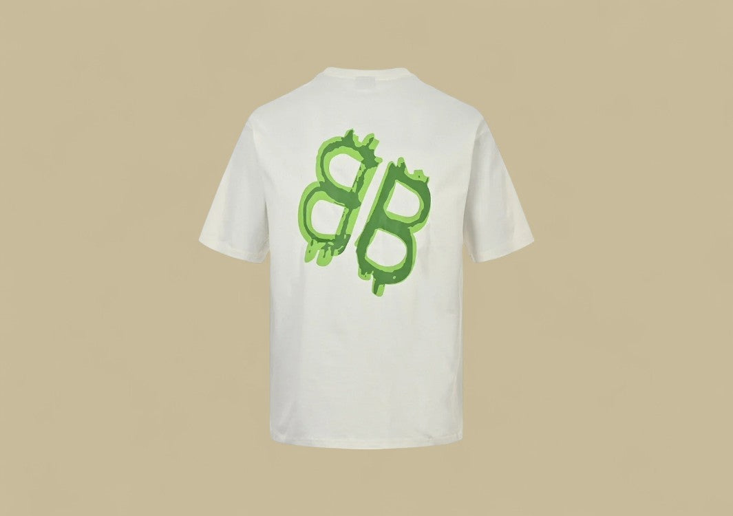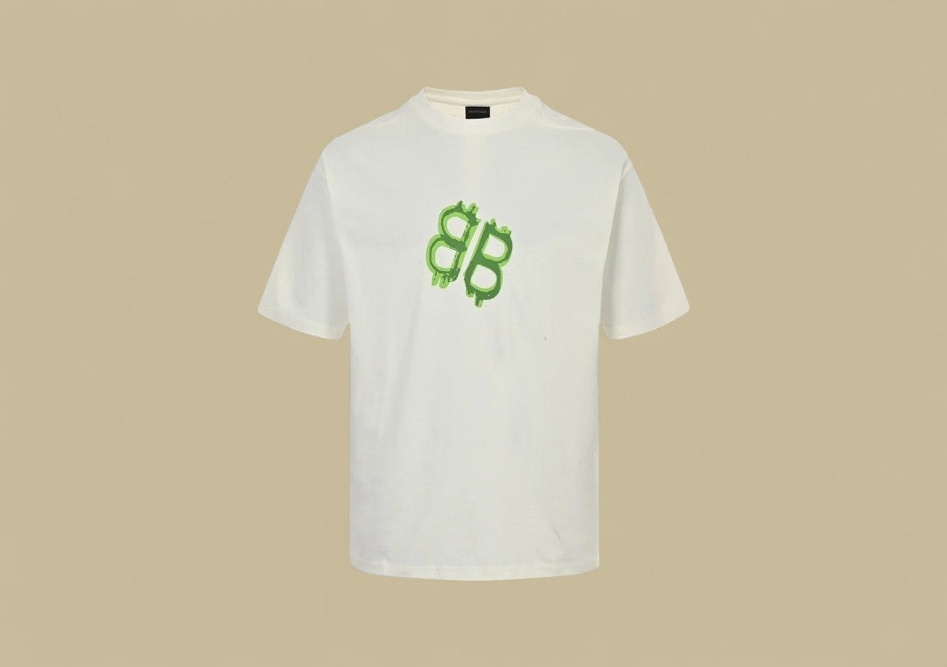 Das Balenciaga 24SS Neon Green Hand-Drawn Double B Logo T-Shirt in Weiß kombiniert minimalistisches Design mit einem auffälligen, handgezeichneten Logo in Neon-Grün. Gefertigt aus hochwertiger, weicher Baumwolle bietet es eine bequeme, lockere Passform für optimalen Tragekomfort. Das leuchtende Double B Logo setzt einen modernen, kreativen Akzent und verleiht dem T-Shirt einen frischen, urbanen Look. Vielseitig kombinierbar, ist es ein Must-have für trendbewusste Streetwear-Fans.