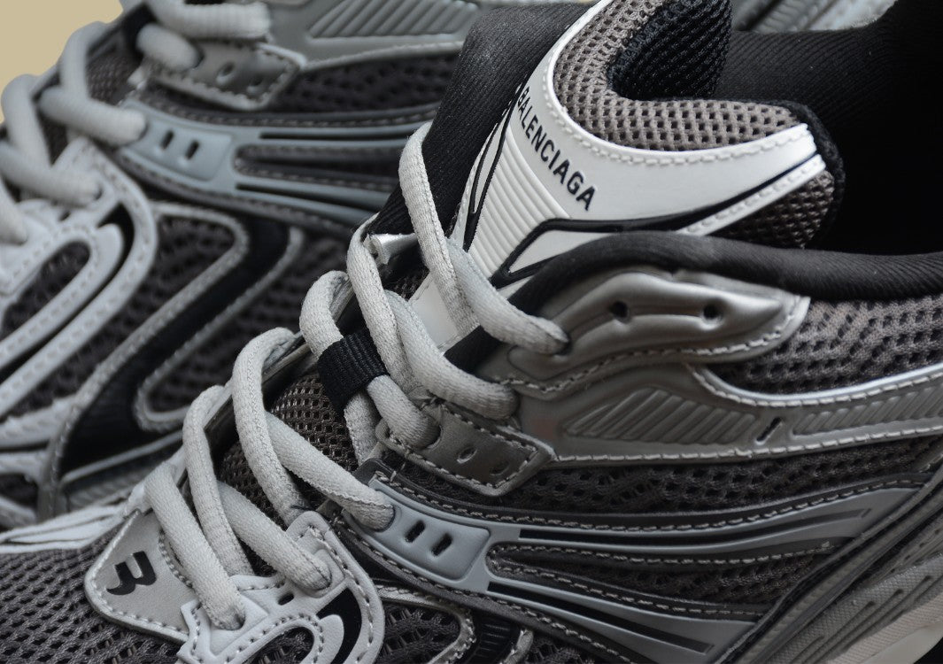 Die Balenciaga 6.0 Retro Slingshot Shoes in Grau verkörpern moderne Ästhetik mit einem Hauch von Retro-Tech-Look – eine perfekte Mischung aus Funktionalität und High-Fashion. Das Obermaterial besteht aus atmungsaktivem Mesh und strukturierten synthetischen Overlays in verschiedenen Grauabstufungen, die Tiefe und Textur schaffen. Die charakteristische, voluminöse Slingshot-Sohle bietet nicht nur ein auffälliges Profil, sondern auch ausgezeichnete Dämpfung und Stabilität bei jedem Schritt. Das durchgehende Graudesign verleiht dem Schuh einen cleanen, monochromen Look, der sich ideal für minimalistische Streetwear oder futuristische Outfits eignet. Dezente Balenciaga-Logos an Zunge und Seite setzen markentypische Akzente. Der „Gray“ Slingshot ist die perfekte Wahl für alle, die technische Raffinesse mit urbaner Eleganz kombinieren möchten.