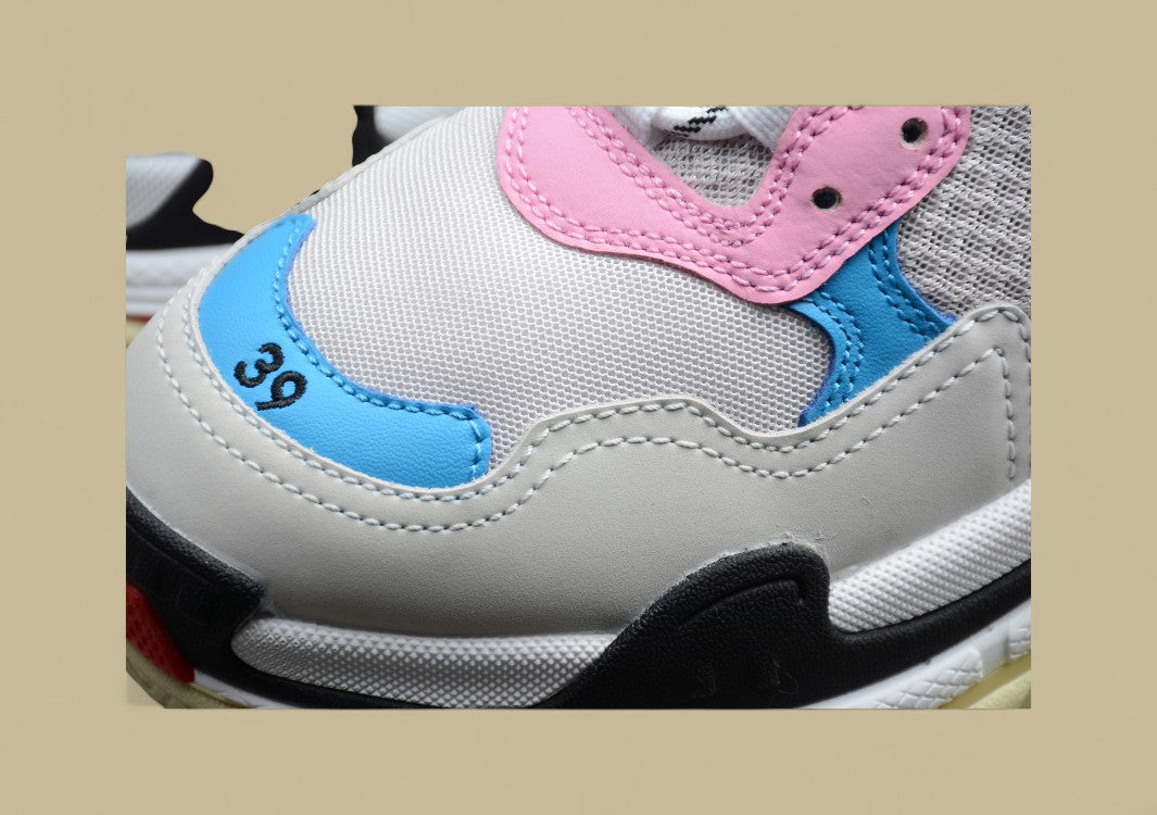 Der Balenciaga Track 2 Sneaker in Beige, Blau und Rot kombiniert technische Raffinesse mit einem auffälligen Farbspiel. Die mehrlagige Konstruktion aus Mesh und synthetischen Materialien sorgt für Atmungsaktivität und Stabilität, während die kräftigen Farbakzente in Blau und Rot dem Sneaker eine dynamische Ausstrahlung verleihen. Die voluminöse Sohle bietet optimalen Komfort und unterstreicht das futuristische Design. Ein Statement-Sneaker für alle, die Funktionalität und Stil vereinen möchten.