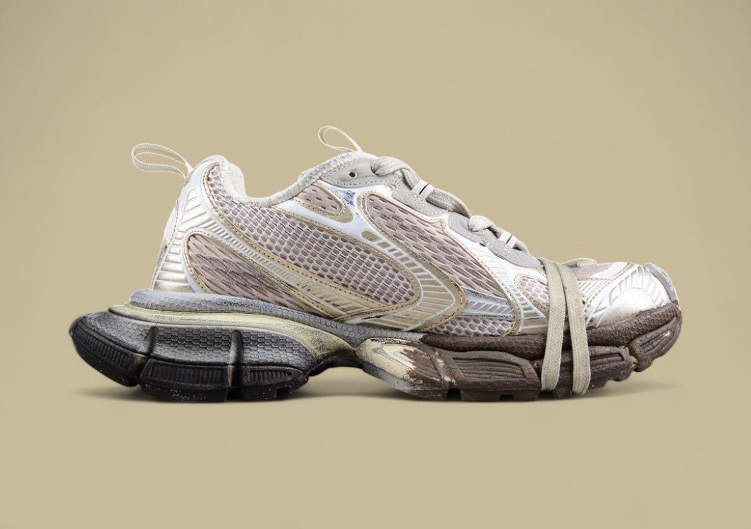 Balenciaga Track Sneaker in elegantem Beige mit futuristischer Konstruktion.Luxus trifft auf sportliche Innovation.