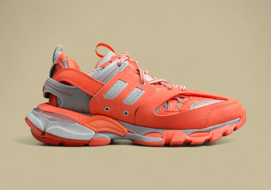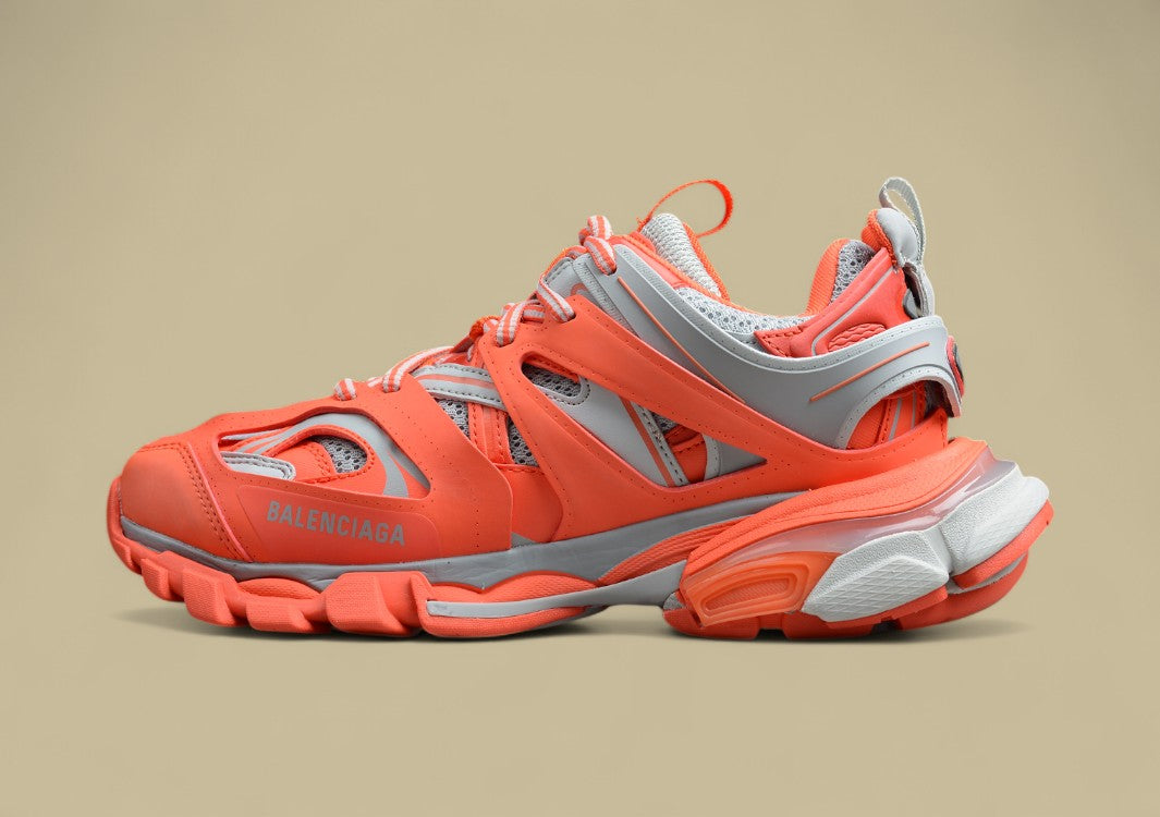 Der Balenciaga Bright Orange & Grey Runner Sneaker besticht durch die kraftvolle Kombination aus leuchtendem Orange und dezentem Grau, die dem klassischen Runner-Design eine moderne und energiegeladene Note verleiht. Gefertigt aus hochwertigen Materialien wie Leder, Mesh und technischen Stoffen, bietet der Sneaker hervorragenden Komfort, Atmungsaktivität und Stabilität. Die mehrlagige Konstruktion mit einer robusten, profilierten Sohle sorgt für sicheren Halt und Langlebigkeit. Dezente Balenciaga-Logos auf Zunge und Ferse setzen stilvolle Akzente. Perfekt für alle, die einen auffälligen und vielseitigen Sneaker suchen.
