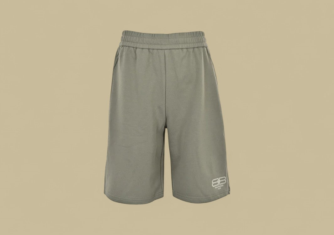 Olivgrüne Shorts mit besticktem Double B Logo von Balenciaga.Lässiger Style trifft auf urbanen Komfort.