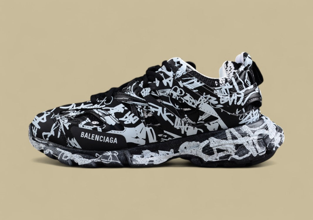 Der Balenciaga Graffiti Runner in Schwarz kombiniert sportliche Dynamik mit urbaner Street-Art-Ästhetik. Die klassische Laufschuh-Silhouette wird durch handgemalte Graffiti-Details auf dem Obermaterial und der Sohle neu interpretiert. Hergestellt aus atmungsaktivem Mesh und strukturierten Overlays, bietet der Sneaker optimalen Tragekomfort und eine ausdrucksstarke Optik. Die schwarze Basis bildet einen starken Kontrast zu den auffälligen Schriftzügen und macht jedes Paar einzigartig. Ein rebellisches Fashion-Statement für Individualisten.