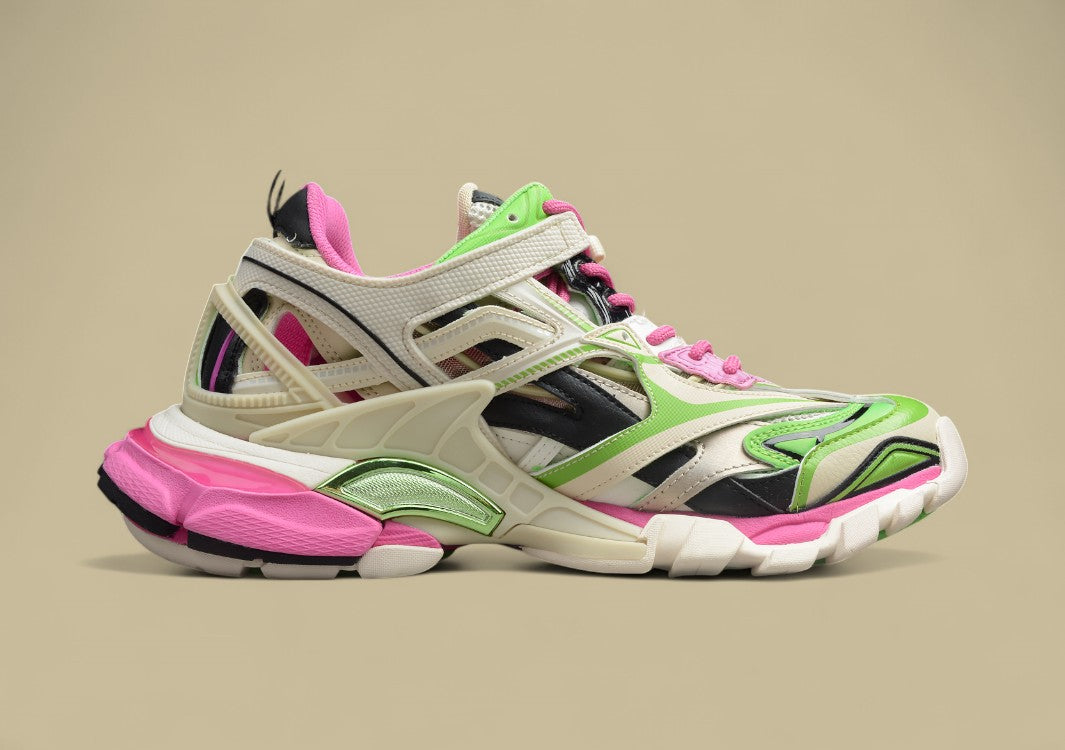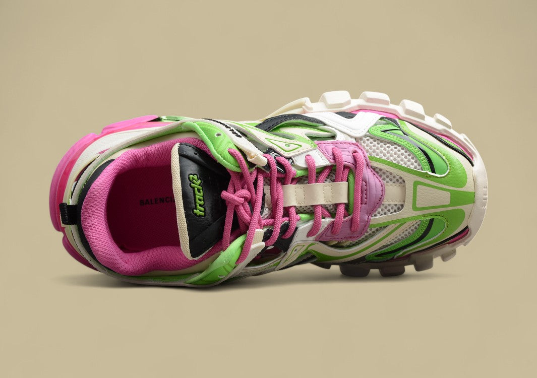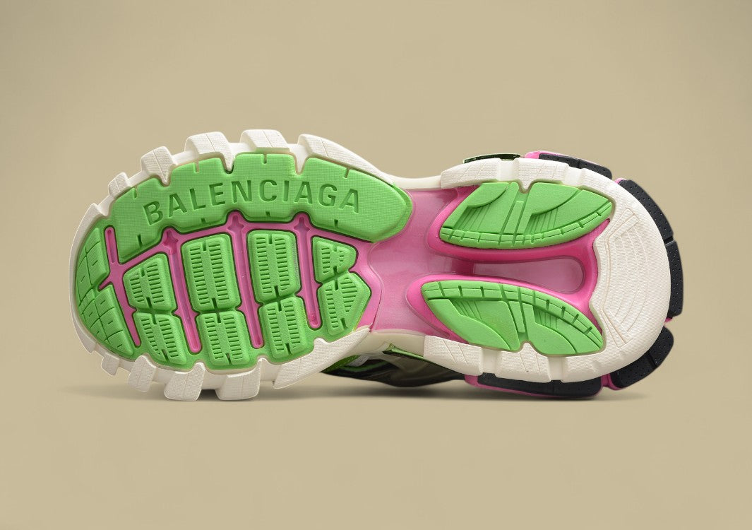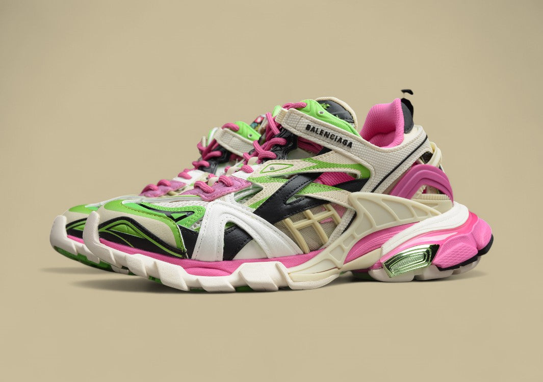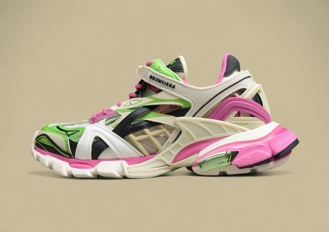 Der Balenciaga Neon Green & Pink Runner Sneaker zieht mit seiner auffälligen Neon-Farbkombination aus Grün und Pink alle Blicke auf sich. Gefertigt aus hochwertigen Materialien wie Leder, Mesh und technischen Stoffen, bietet der Schuh eine perfekte Mischung aus Komfort, Atmungsaktivität und Stabilität. Die mehrlagige Konstruktion mit einer robusten, profilierten Sohle sorgt für optimalen Halt und Langlebigkeit. Dezente Balenciaga-Logos auf Zunge und Ferse setzen modische Akzente. Dieser Sneaker ist ideal für alle, die einen mutigen, trendigen Schuh mit urbanem Flair suchen.