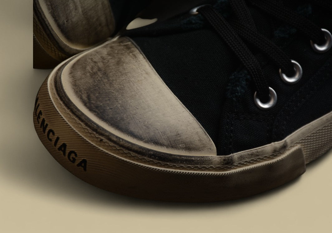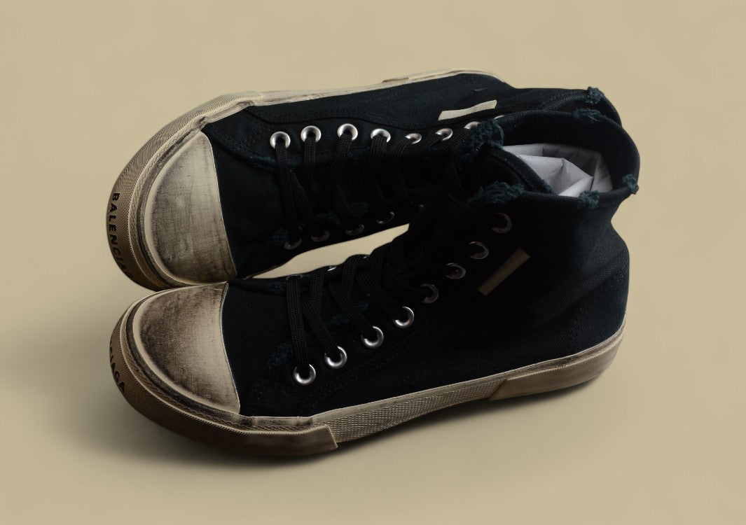 Balenciaga Paris 22S High-Top Sneaker aus Vintage-Canvas im Distressed-Look.Lässiger Streetstyle trifft auf exklusiven Luxus.