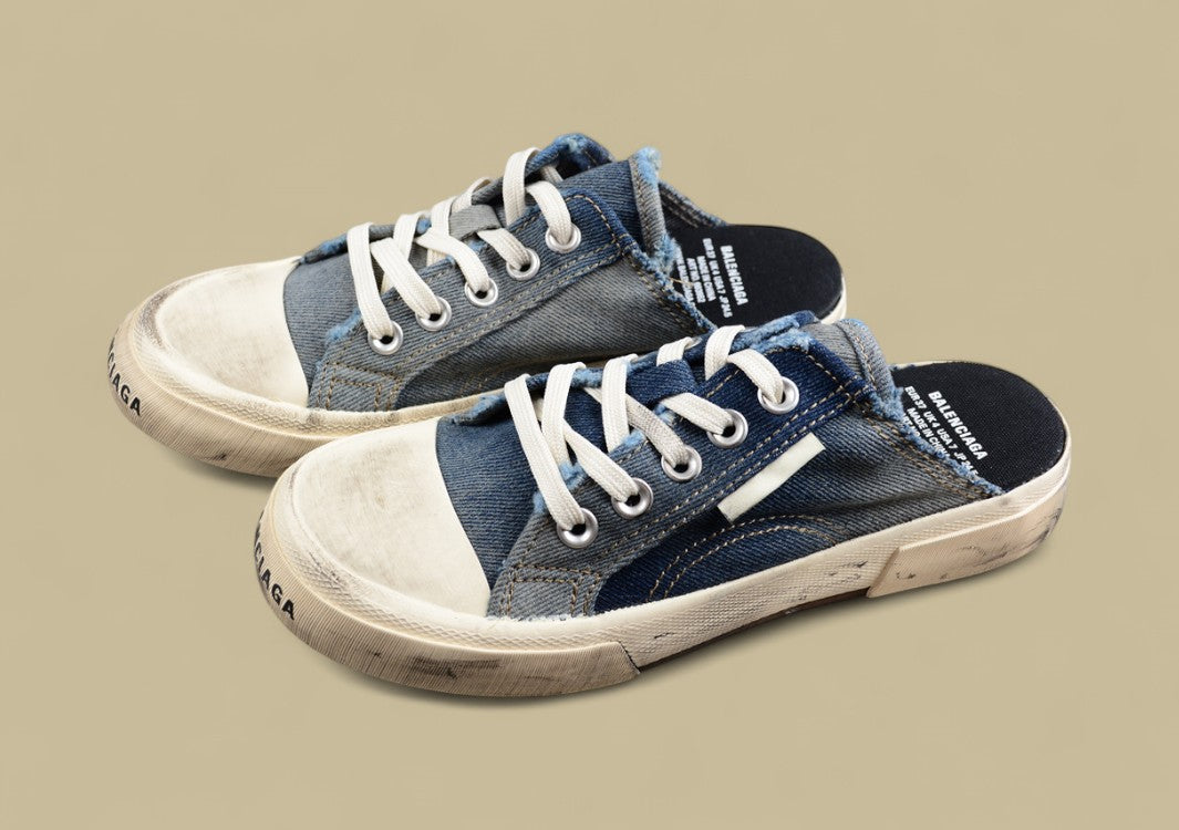 Verwaschener Denim, offene Ferse – der Paris Sneaker Mule ist cool, roh und rebellisch.Ein stilvoll zerstörter Slip-On für mutige Alltagslooks.