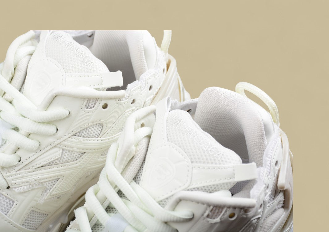 Der Balenciaga Runner Kith „Four.Color“ aus der 21SS-Kollektion ist ein ausdrucksstarker Retro-Dad-Sneaker, der High-Fashion mit sportlicher Nostalgie verbindet. Die Farbpalette kombiniert lebendige Töne wie Blau, Rot, Silber und Schwarz und schafft so einen energiegeladenen Look, der an klassische Laufschuhe der frühen 2000er erinnert. Die dekonstruierten Schichten, sichtbaren Nähte und gezielten Used-Effekte unterstreichen den typischen „getragenen“ Charakter der Runner-Serie. Dank atmungsaktivem Mesh, strukturgebenden Overlays und einer griffigen Außensohle bietet der Sneaker sowohl Stil als auch Funktion. Die subtile Kith-x-Balenciaga-Kollaboration macht ihn zu einem begehrten Sammlerstück für Sneakerheads und Modekenner gleichermaßen.
