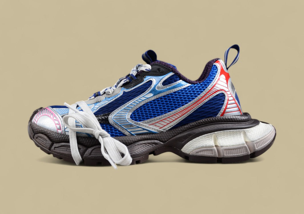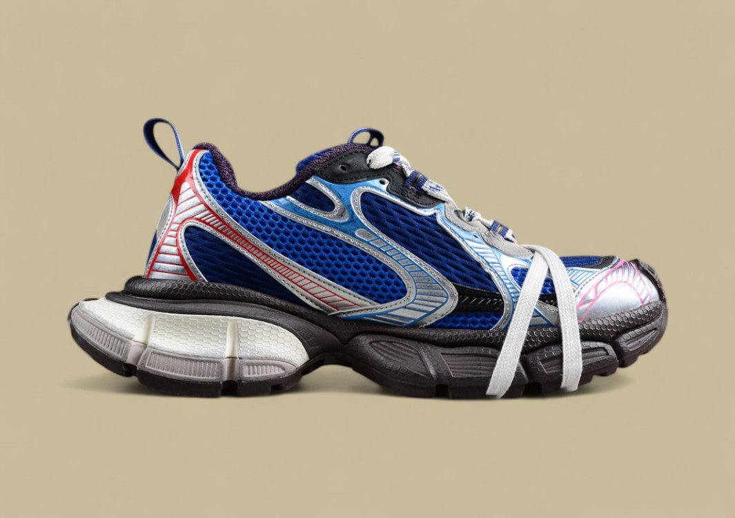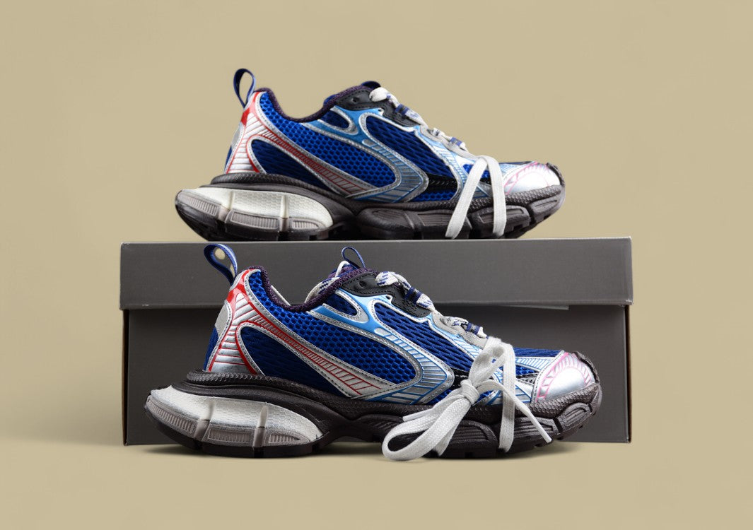 Glänzende Racing-Optik in Blau und Rot – der Balenciaga Runner im Metallic-Finish.Retro-Tech trifft auf High-Fashion für einen energischen Auftritt.