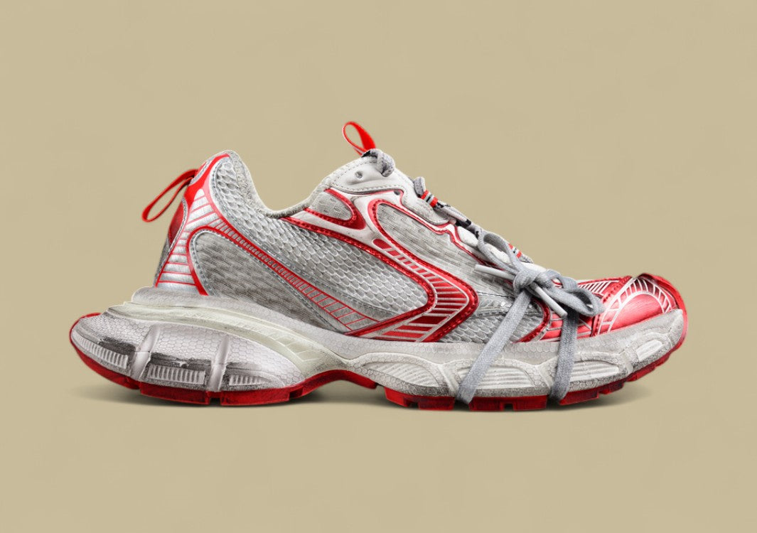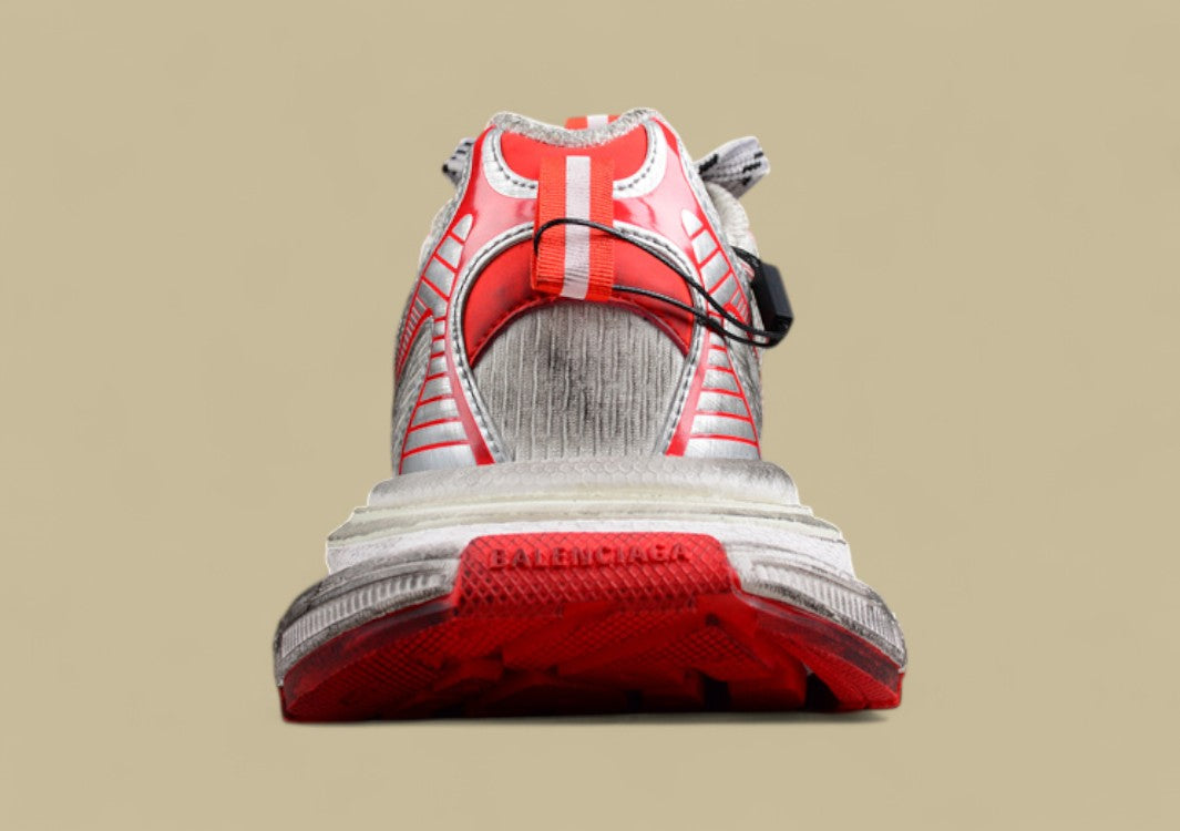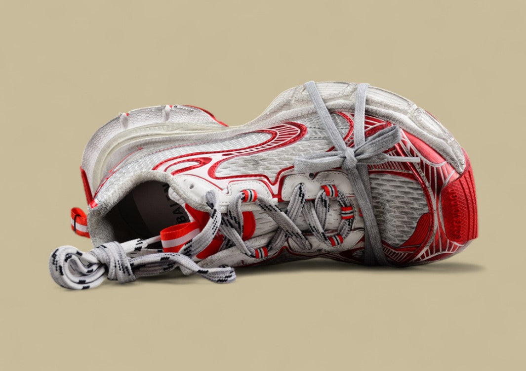 Der Balenciaga Runner Sneaker in Distressed White und Red verbindet klassische Laufschuh-Silhouetten mit einem bewusst getragenen, dekonstruierten Look. Die Farbkombination aus gealtertem Weiß und kräftigem Rot sorgt für einen ausdrucksstarken Kontrast, während sichtbare Nähte, offene Kanten und Used-Effekte dem Sneaker eine rauhe, authentische Optik verleihen. Die mehrschichtige Konstruktion aus Mesh und Synthetik sowie die profilierte Sohle sorgen für Komfort, Stabilität und eine sportlich-dynamische Form. Mit seinem Vintage-inspirierten Design und der rebellischen Note ist dieser Sneaker wie geschaffen für Fashion-Enthusiasten, die rohe Ästhetik mit technischer Raffinesse kombinieren möchten.