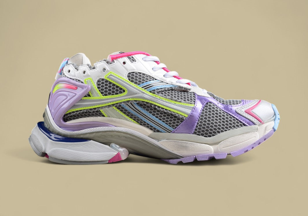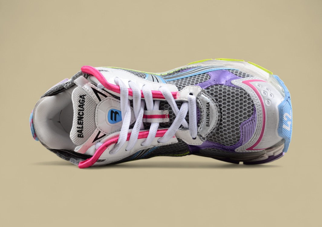 Der Balenciaga Runner Sneaker in Multi-Color Neon Mesh ist ein visuelles Statement, das Retro-Running-Vibes mit maximaler Farbintensität kombiniert. Neonpinke, grüne, gelbe und blaue Akzente treffen auf atmungsaktives Mesh und sorgen für eine explosive, energiegeladene Optik. Die dekonstruierten Schichten, sichtbaren Nähte und Used-Effekte unterstreichen den getragenen Look und betonen den sportlich-technischen Charakter des Sneakers. Die voluminöse, profilierte Sohle sorgt für Stabilität und Komfort, während das auffällige Farbspiel für Streetwear-Relevanz sorgt. Dieser Runner richtet sich an alle, die Mode mit Mut tragen – laut, auffällig und kompromisslos modern.