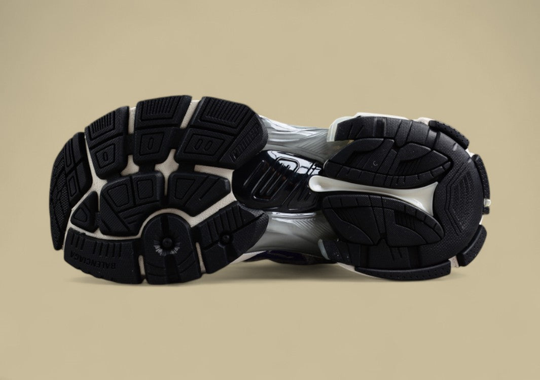 Der Balenciaga Runner Sneaker in Weiß, Grau und Lila verbindet Vintage-Laufschuh-Design mit avantgardistischer Dekonstruktion. Die mehrschichtige Konstruktion aus atmungsaktivem Mesh und synthetischen Overlays sorgt für Tiefe, Struktur und die typische „Used“-Ästhetik der Runner-Serie. Die weiße Basis verleiht dem Schuh Leichtigkeit, während graue und violette Akzente für subtile Farbkontraste und einen sportlich-modernen Look sorgen. Die dynamische Linienführung und die profilierte Sohle bieten Komfort und Halt, während sichtbare Nähte und bewusst gealterte Details das Design handgearbeitet und individuell wirken lassen. Ein Sneaker, der technisches Design mit einem Hauch Farbfrische vereint.