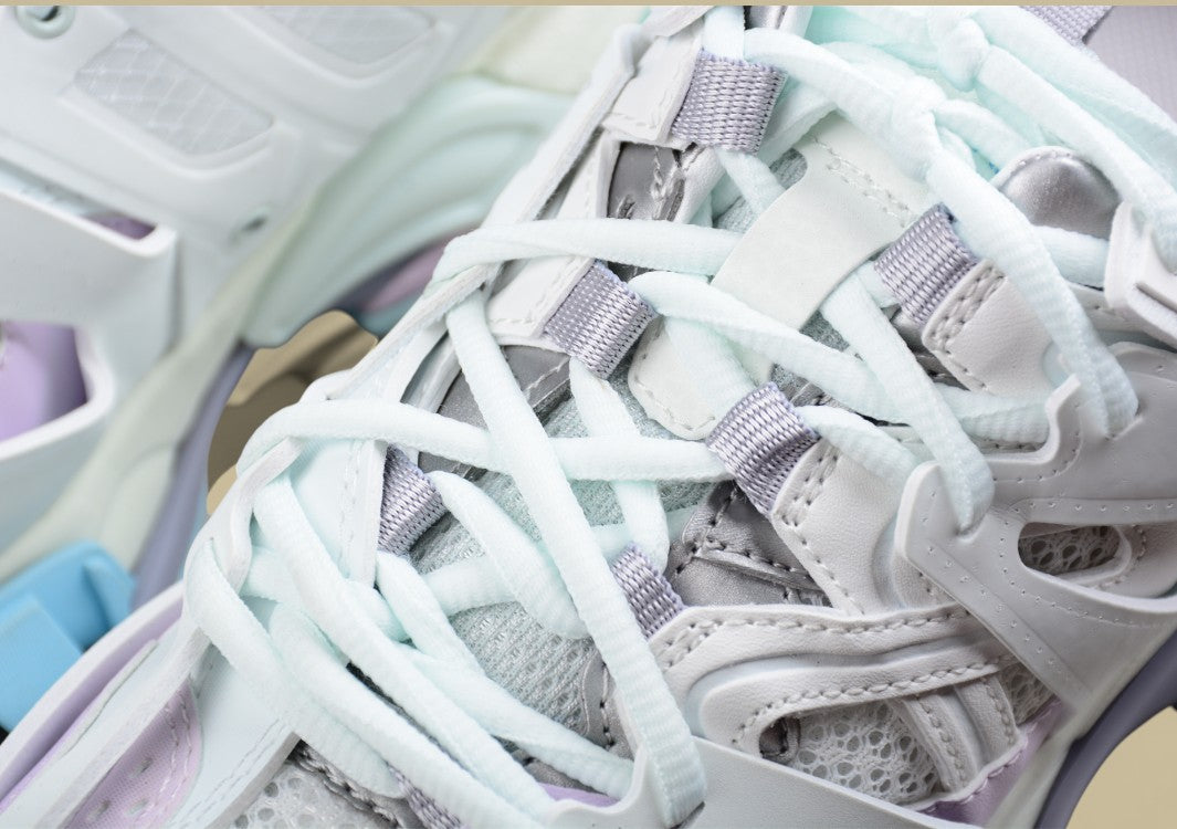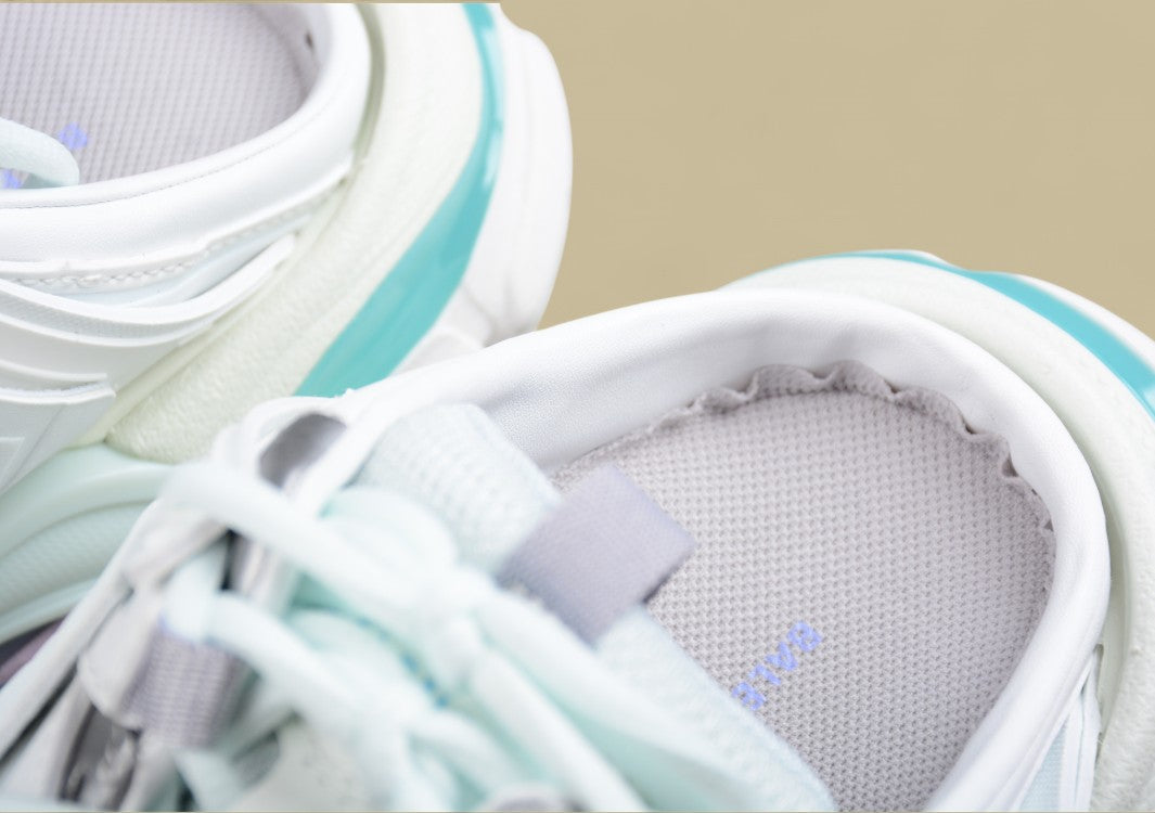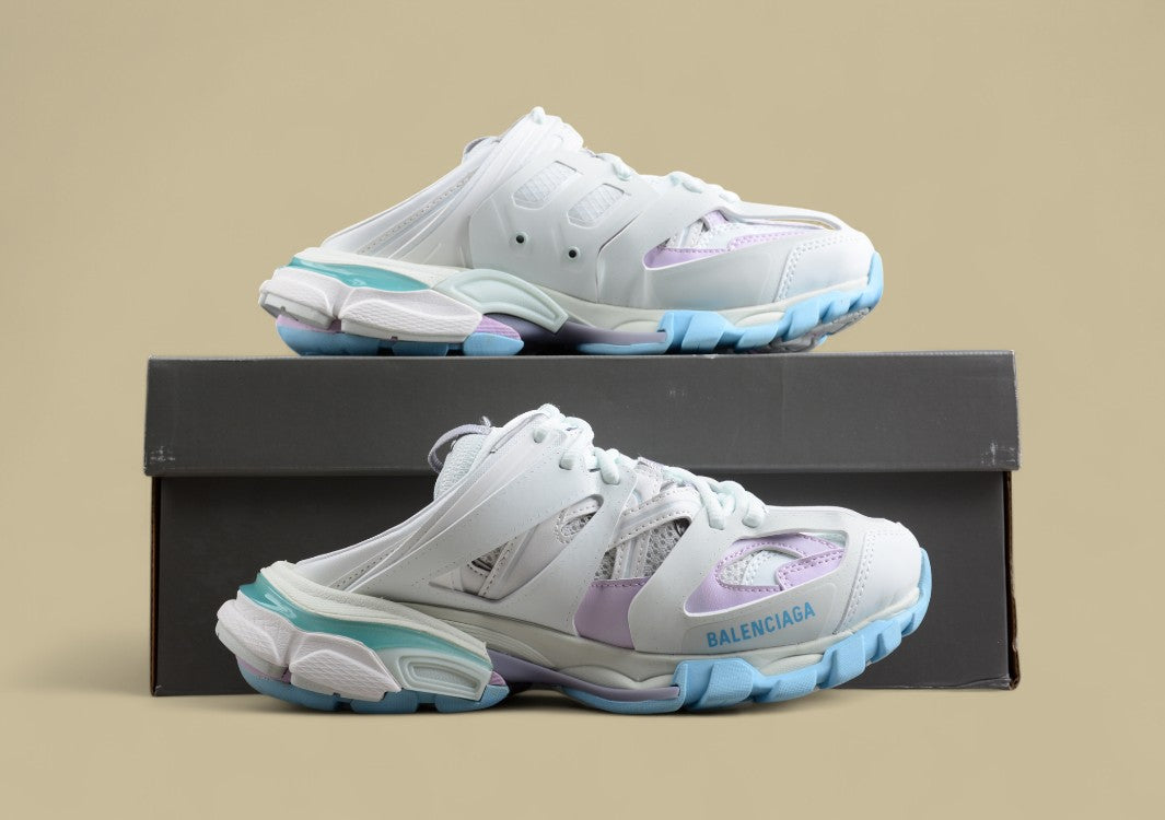 Der Balenciaga Tess S. Gomma Maille in Weiß und Orange vereint sportliche Funktion mit avantgardistischem Design. Mit seiner markanten, voluminösen Silhouette, inspiriert von Performance-Sneakern, setzt er klare visuelle Akzente. Das atmungsaktive Mesh-Obermaterial in Weiß sorgt für Leichtigkeit und Komfort, während orangefarbene Details kraftvolle Kontraste und Dynamik ins Spiel bringen. Die robuste Gummisohle („Gomma“) liefert nicht nur Stabilität, sondern auch eine starke visuelle Basis für den insgesamt sportlich-progressiven Look. Balenciaga-Branding, technische Linienführung und ein auffälliger Materialmix machen diesen Sneaker zu einem stilvollen Begleiter für urbane Looks mit Energie und Attitüde.