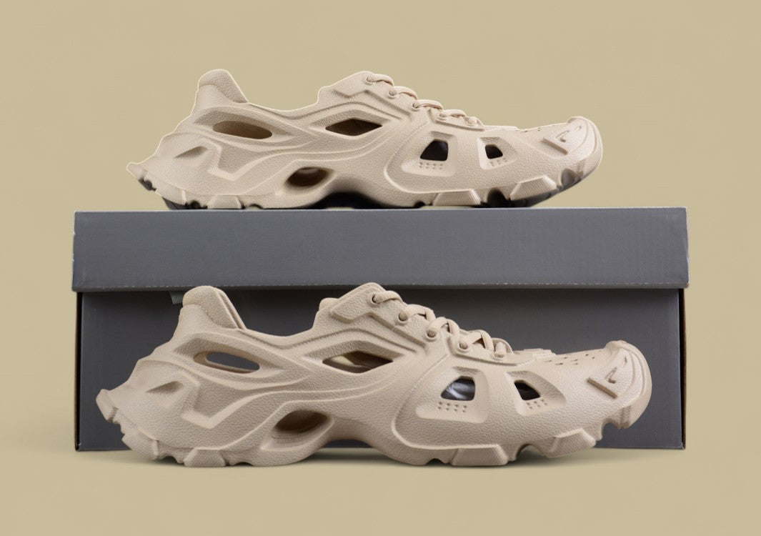 Der Balenciaga Track Sneaker in Beige vereint sportliche Funktionalität mit luxuriösem Design. Die komplexe, mehrlagige Konstruktion aus Mesh und synthetischen Materialien bietet sowohl eine technische Ästhetik als auch optimalen Komfort. Der dezente Beigeton sorgt für eine elegante, neutrale Basis, die sich leicht in verschiedene Outfits integrieren lässt, während die markante Profilsohle und die klobige Silhouette dem Sneaker einen einzigartigen, futuristischen Touch verleihen. Ein Modell für diejenigen, die sowohl Stil als auch Performance schätzen.