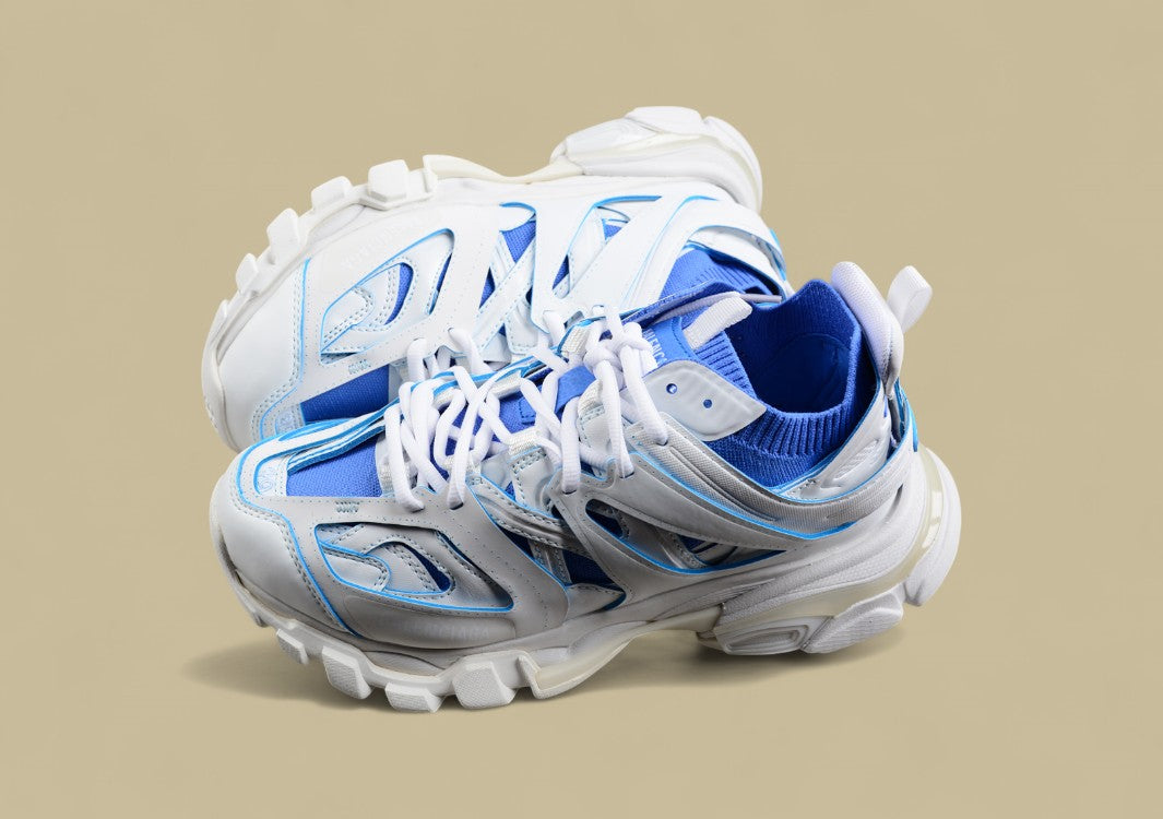 Der Balenciaga Track Sneaker in Weiß und Himmelblau vereint technische Raffinesse mit sanfter Farbgebung – ein perfektes Gleichgewicht aus Funktion und Stil. Die mehrlagige Konstruktion aus atmungsaktivem Mesh und robusten Overlays sorgt für Stabilität und Tiefe, während die klare Kombination aus Weiß und hellem Blau Frische und Leichtigkeit vermittelt. Inspiriert von Trailrunning-Designs bringt dieser Sneaker Outdoor-Energie in die urbane Modewelt. Die profilierte Chunky-Sohle bietet optimalen Halt, während das detailreiche Obermaterial futuristische Linienführung und sportliche Dynamik verkörpert. Ideal für moderne Looks, die gleichzeitig clean und kraftvoll wirken.