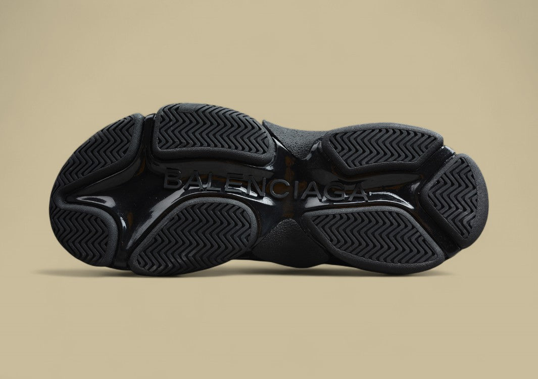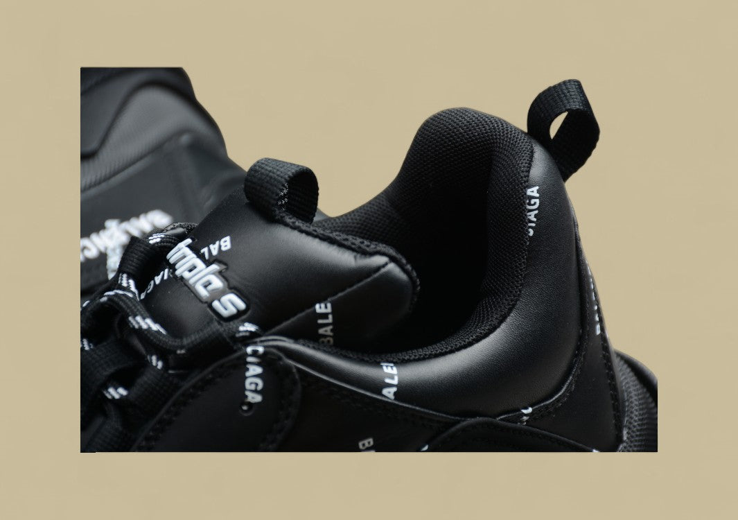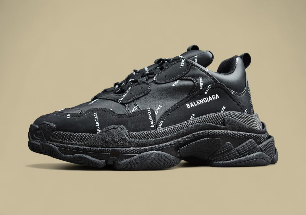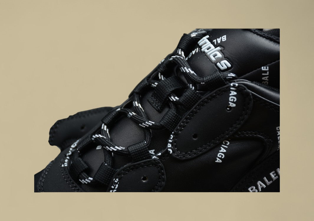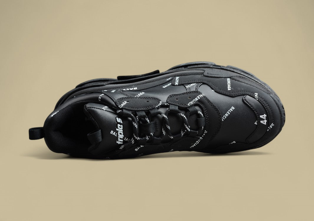 Der Balenciaga Triple S Black aus Leder kombiniert Premium-Material mit Allover-Branding – kraftvoll, luxuriös und kompromisslos schwarz.