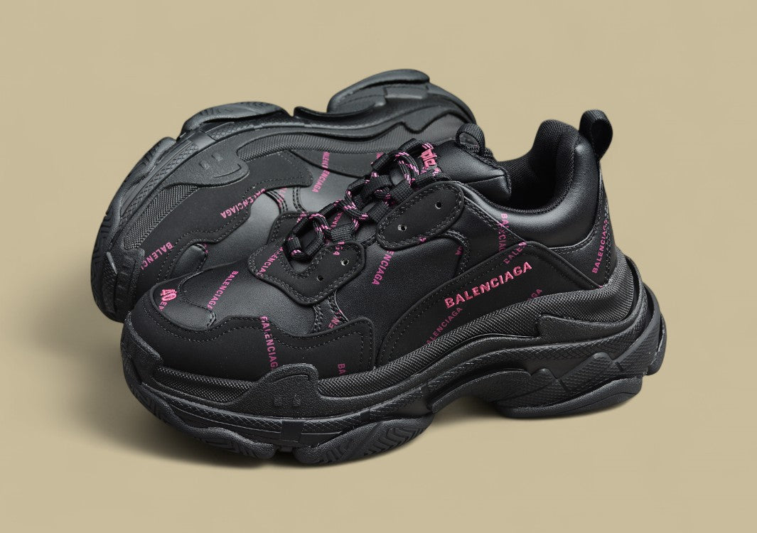 Der Balenciaga Triple S Black Pink Logo kombiniert schwarzen Chunky-Look mit pinkem Branding – modern, kraftvoll und ikonisch.